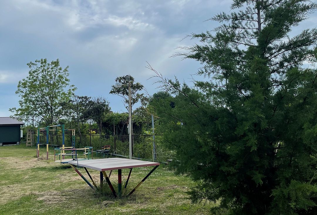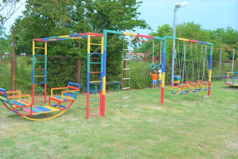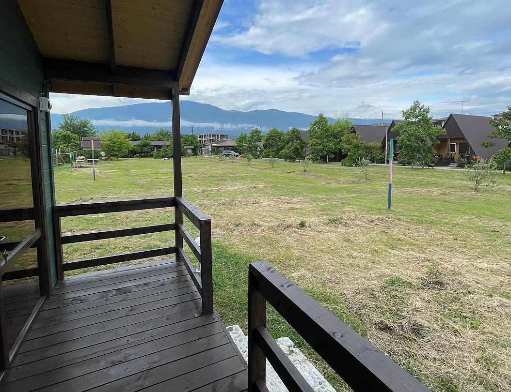 На территории комплекса оборудованы общая кухня для самостоятельного приготовления еды, мангальная зона, детская площадка, а также охраняемая парковка для автомобилей. До мелко-галечного поселкового пляжа 300 метров.