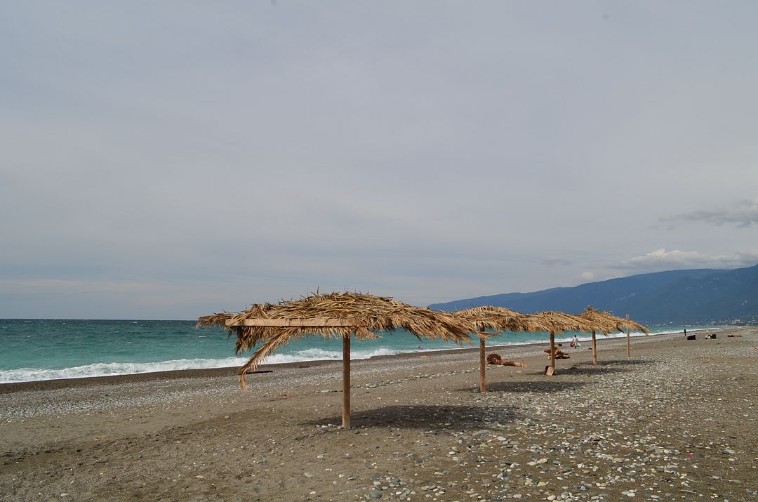 Поездом или самолетом до г. Сочи (Адлер), далее на общественном транспорте или на такси до Казачьего рынка (8 км от ж/д вокзала, 15 км от аэропорта), затем пройти пешком около 500 м до пограничного поста на р. Псоу до границы России и Абхазии. После самостоятельного прохождения паспортного и таможенного контроля до места отдыха можно доехать на автобусе, маршрутном такси или воспользоваться услугами частных водителей.