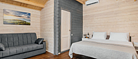 Просторный домик для размещения 2-4 человек. Двуспальная кровать + диван. Из техники есть кондиционер, телевизор и холодильник. В ванной комнате есть всё необходимое.