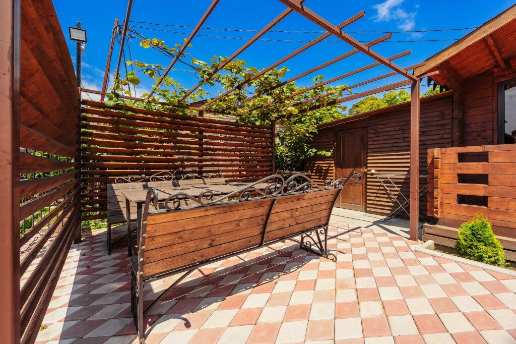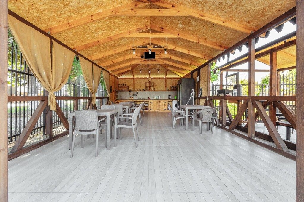На территории есть просторная кухня-веранда для самостоятельного приготовления пищи и отдыха.