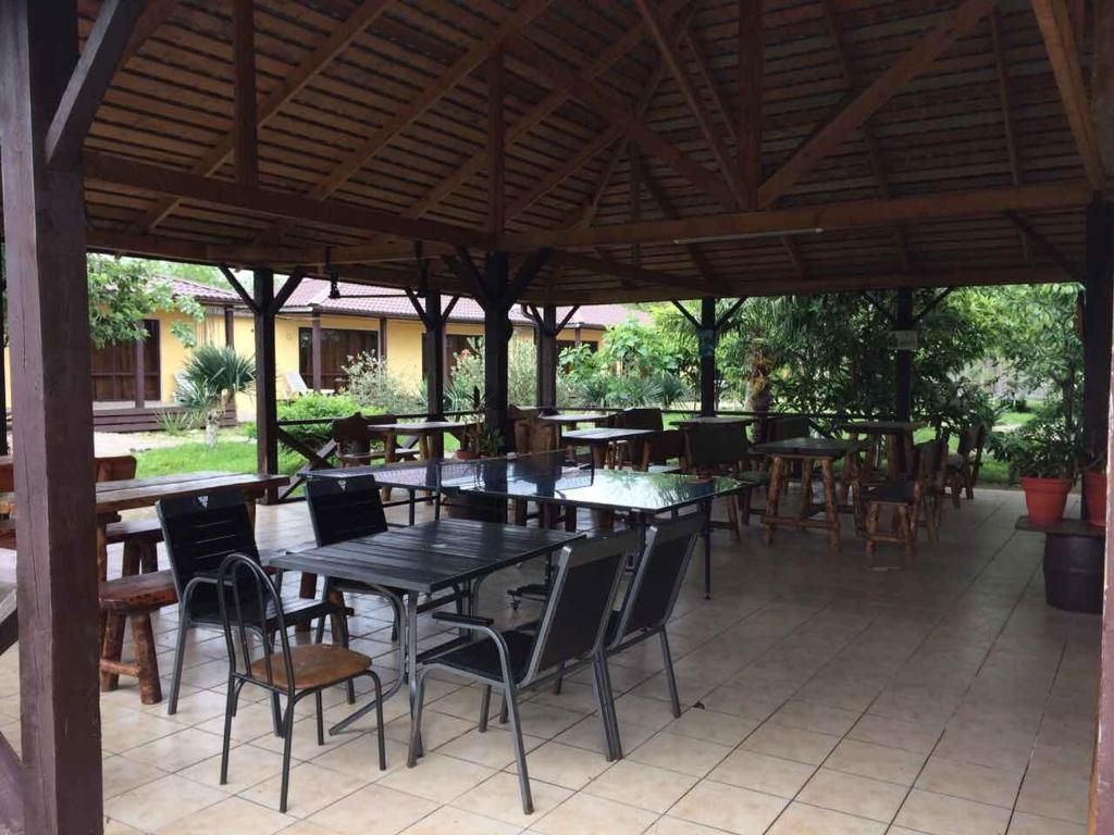 В коттедже находится уютный ресторан, который предлагает гостям вкуснейшие блюда.