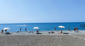 В 200 метрах находится поселковый песчано-галечный пляж, работает прокат шезлонгов и зонтиков, есть раздевалки и навесы.