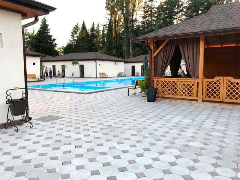 <p "="">При отеле работает кафе где гости могут заказать себе завтрак, обед, ужин. На территории организованы беседки и зоны для отдыха, есть открытый бассейн. Отдыхающим доступны услуги прачечной, интернет Wi-Fi и охраняемая автостоянка. Для детей оборудованы игровая площадка и бассейн.