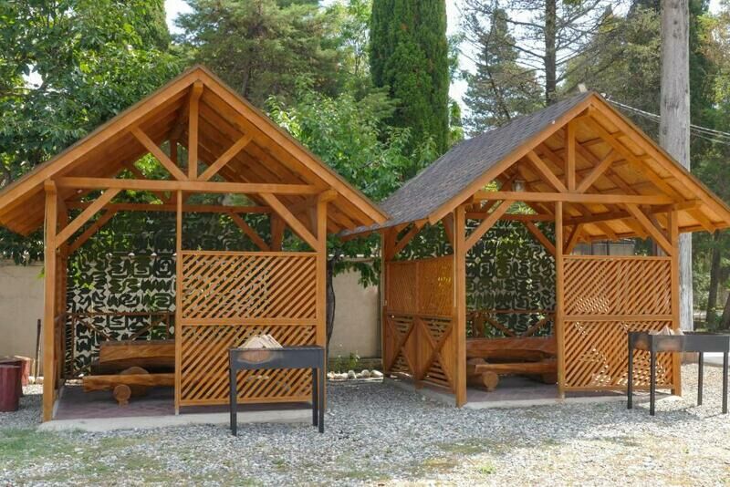 Отдых на Кавказе нельзя представить без ароматного и аппетитного шашлыка. Предлагаем к услугам гостей в аренду уютные беседки и мангал для создания “вкусного настроения”, где можно самостоятельно приготовить себе и своим близким мясо, овощи, рыбу по любимым рецептам. Шампура предоставляются бесплатно. Беседки просторные и подойдут для большой и дружной компании. Ароматные блюда на углях, свежий воздух, абхазское вино и великолепная природа Абхазии не оставят равнодушными и подарят массу приятных эмоций!