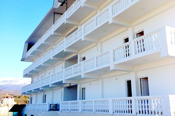 Четырёхэтажный корпус спроектирован таким образом, чтобы на каждом этаже можно было входить в номера с единой террасы.