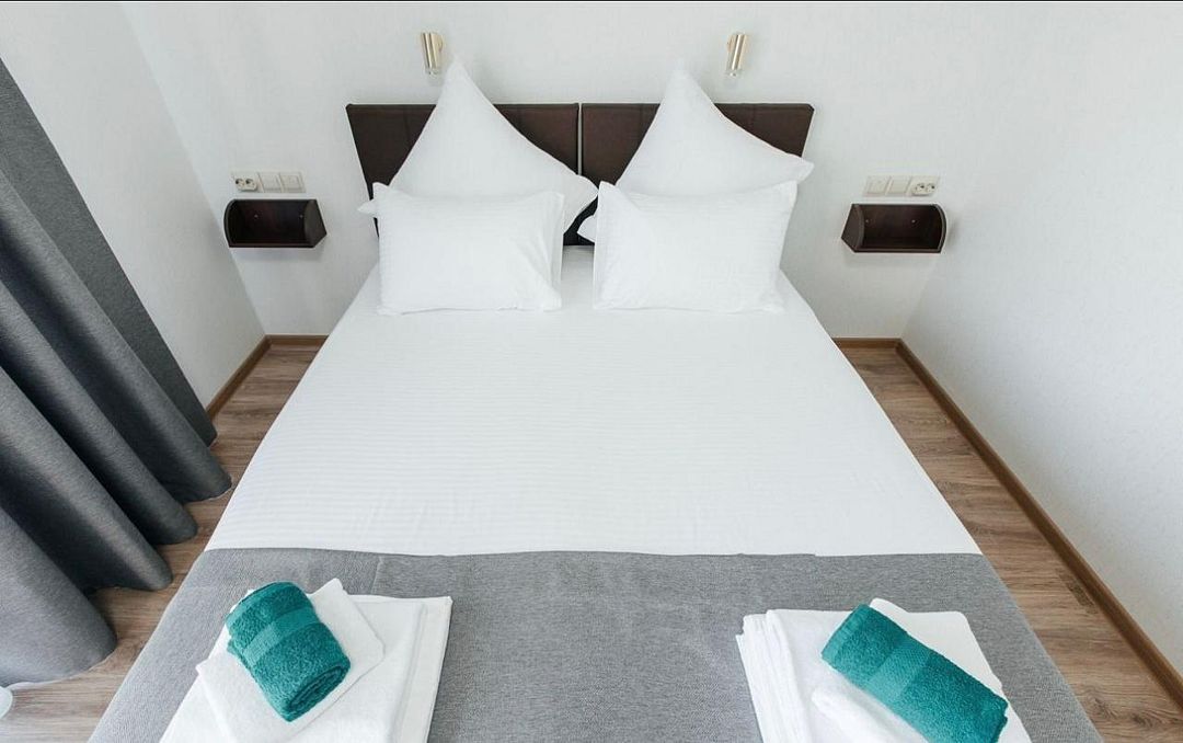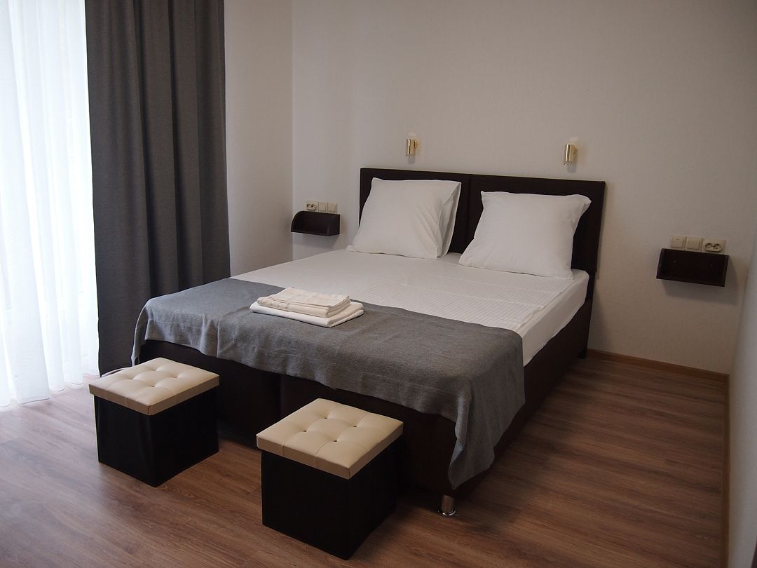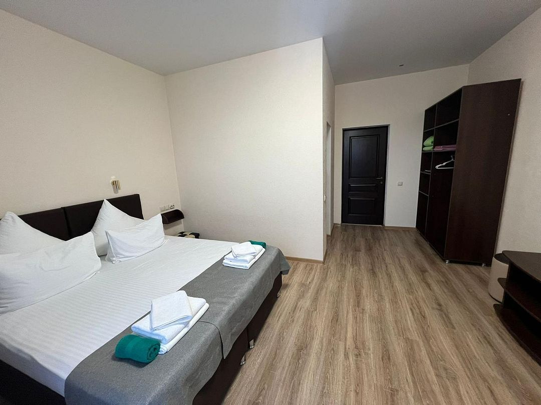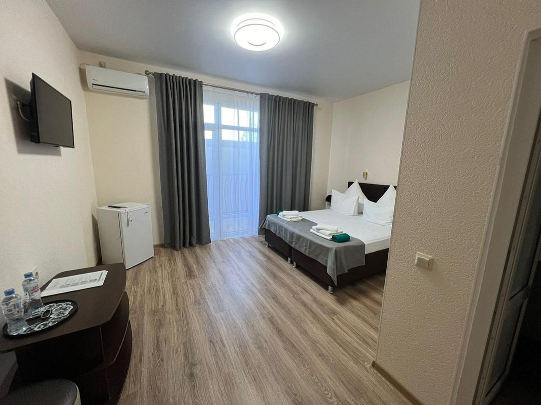 Однокомнатный номер, с двухспальной кроватью, ванная комната в номере, с выходом на свой балкон.