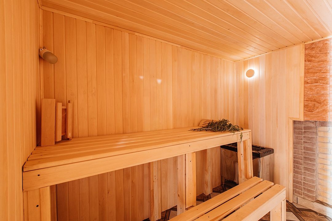 На территории гостиницы вас ждет подогреваемый бассейн и баня, где можно расслабиться после насыщенного дня. До пляжа — всего 400 метров по прямой дороге.
