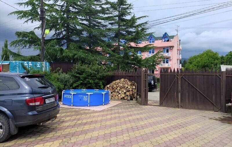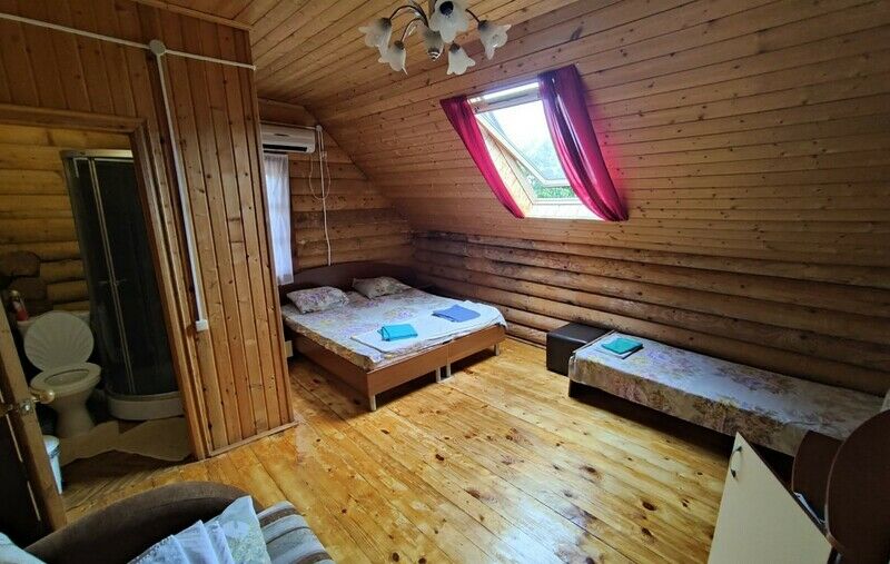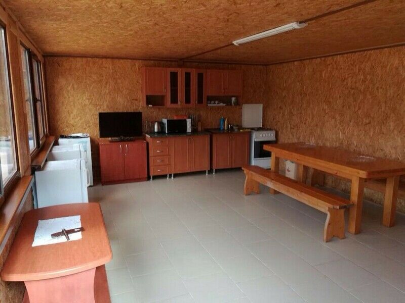 Гостевой дом представляет собой небольшой уютный деревянный коттедж в 2 этажа. На территории установлен каркасный летний бассейн, оборудована мангальная зона и парковка для путешествующих на личном автомобиле. Для гостей предусмотрена кухня для самостоятельного приготовления пищи, есть вся необходимая посуда и техника.