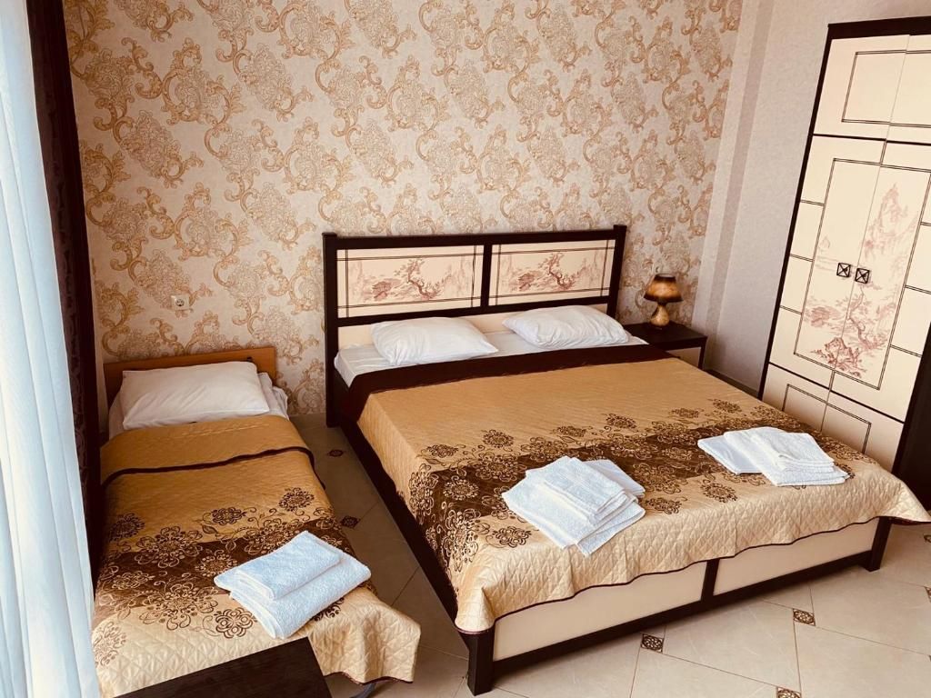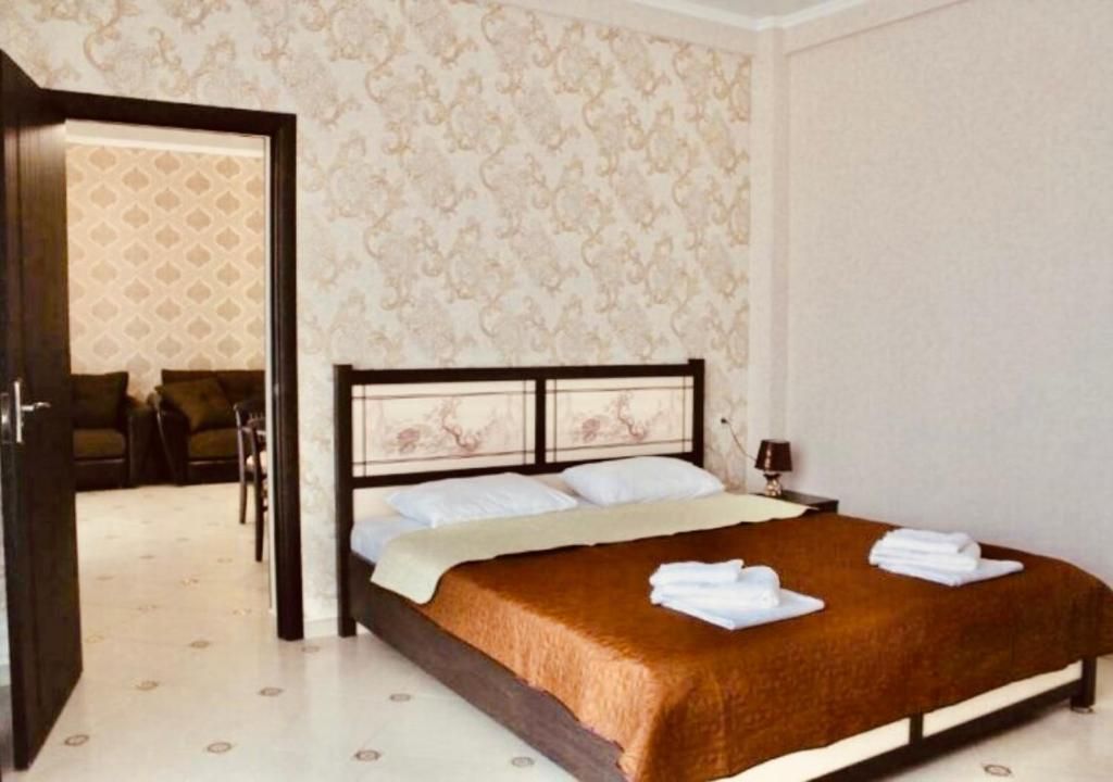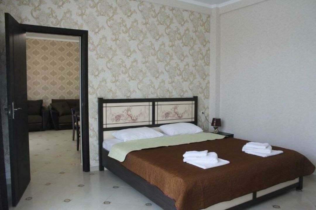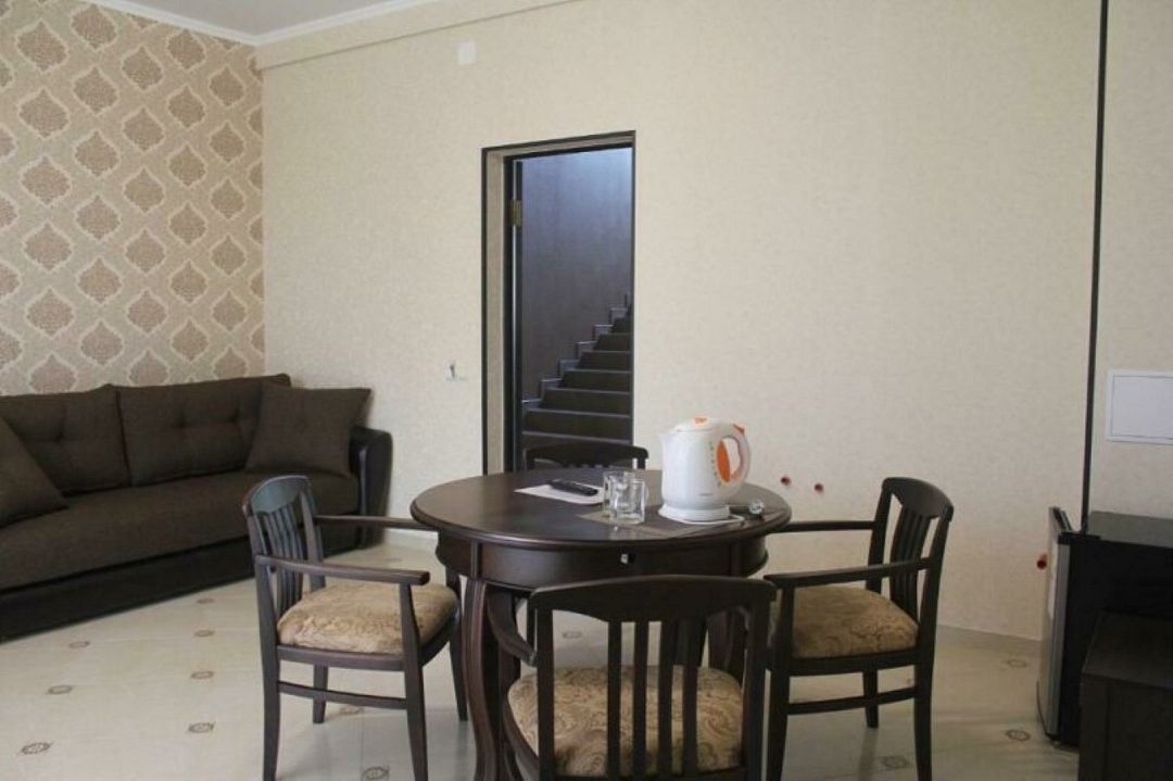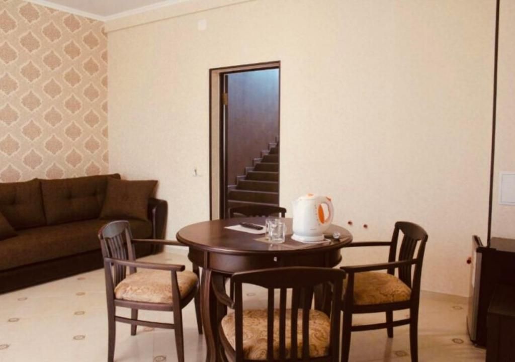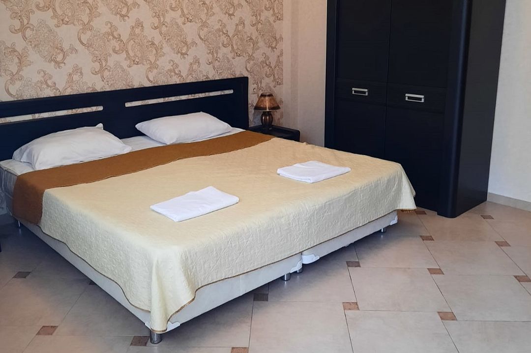 Просторный и комфортный двухкомнатный номер, идеально подходящий для размещения двух гостей с возможностью размещения ещё двух человек на дополнительном месте. Отличный вариант для семьи или компании, ценящих пространство и удобство. Планировка и размещение: • спальня с двуспальной кроватью (2 основных места); • гостиная с раскладным двухместным диваном (дополнительные места). В номере: • современная мебель; • кондиционер; • телевизор; • холодильник; • электрический чайник; • обеденный стол со стульями; • Wi-Fi; • большие окна, много естественного света. Собственный санузел: • душ; • туалет; • раковина с зеркалом; • полотенца и туалетные принадлежности. Номер подойдёт для семейного отдыха или размещения до 4 человек, обеспечивая комфорт, уединение и уютную атмосферу для отдыха у моря.Услуги и удобства