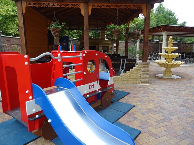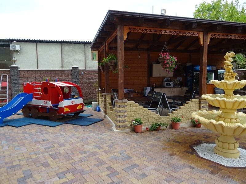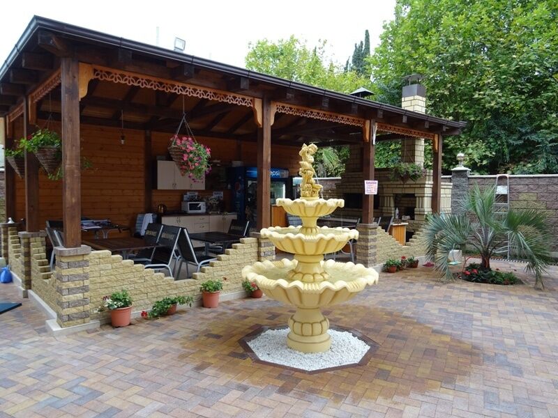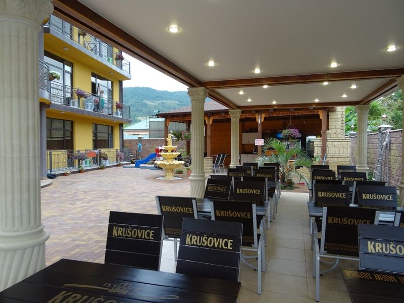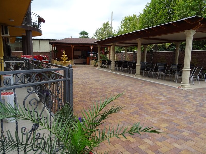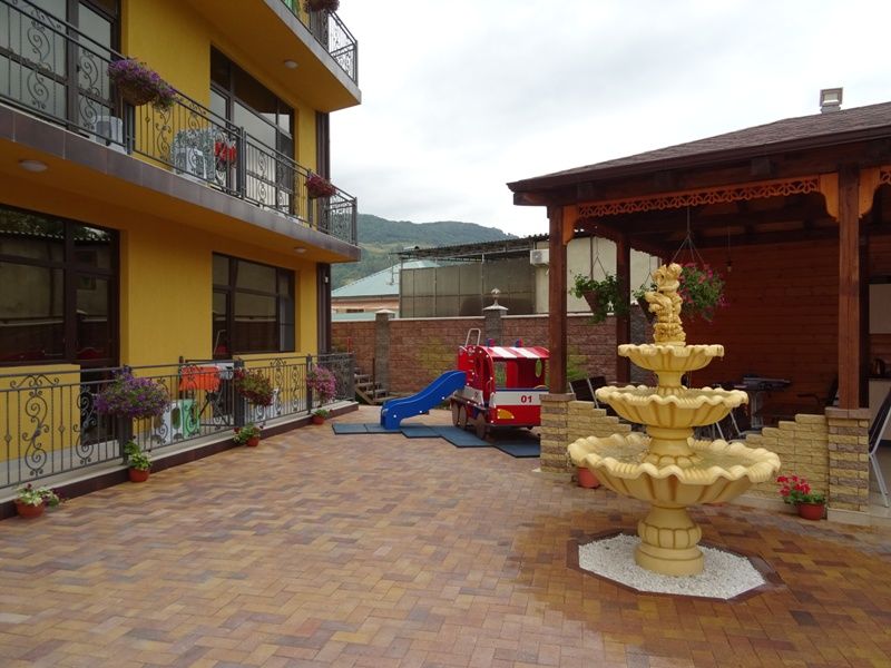 Отель представляет собой современный 4-этажный комплекс, окруженный зеленью и цветущими растениями. На территории есть уютная столовая, летняя веранда и детская площадка для отдыхающих.