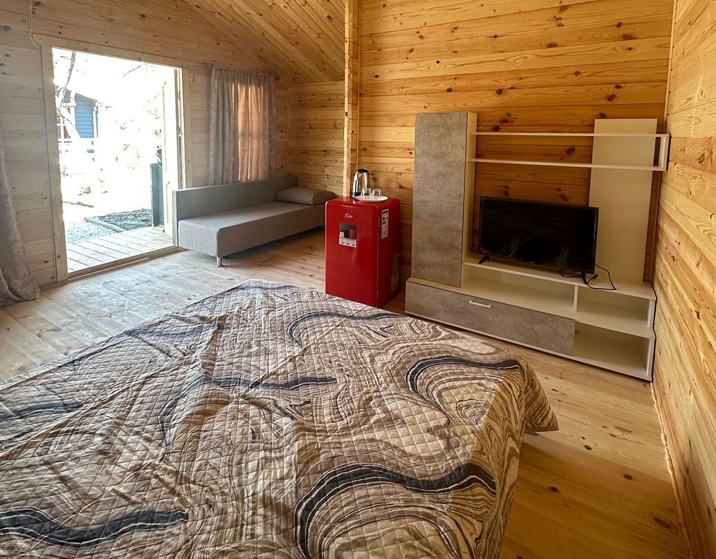 Номерной фонд составляет 6 гостевых коттеджей (эко-домиков) с персональными удобствами: кондиционер, телевизор, холодильник, чайник, душ, туалет, фен.
