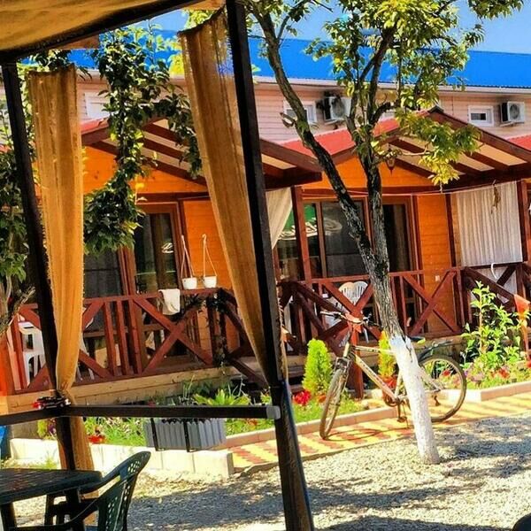 Гостевой дом представляет из себя одноэтажные домики-номера с отдельным входом, а также занимает благоустроенную территорию - всего в 550 метрах от моря.