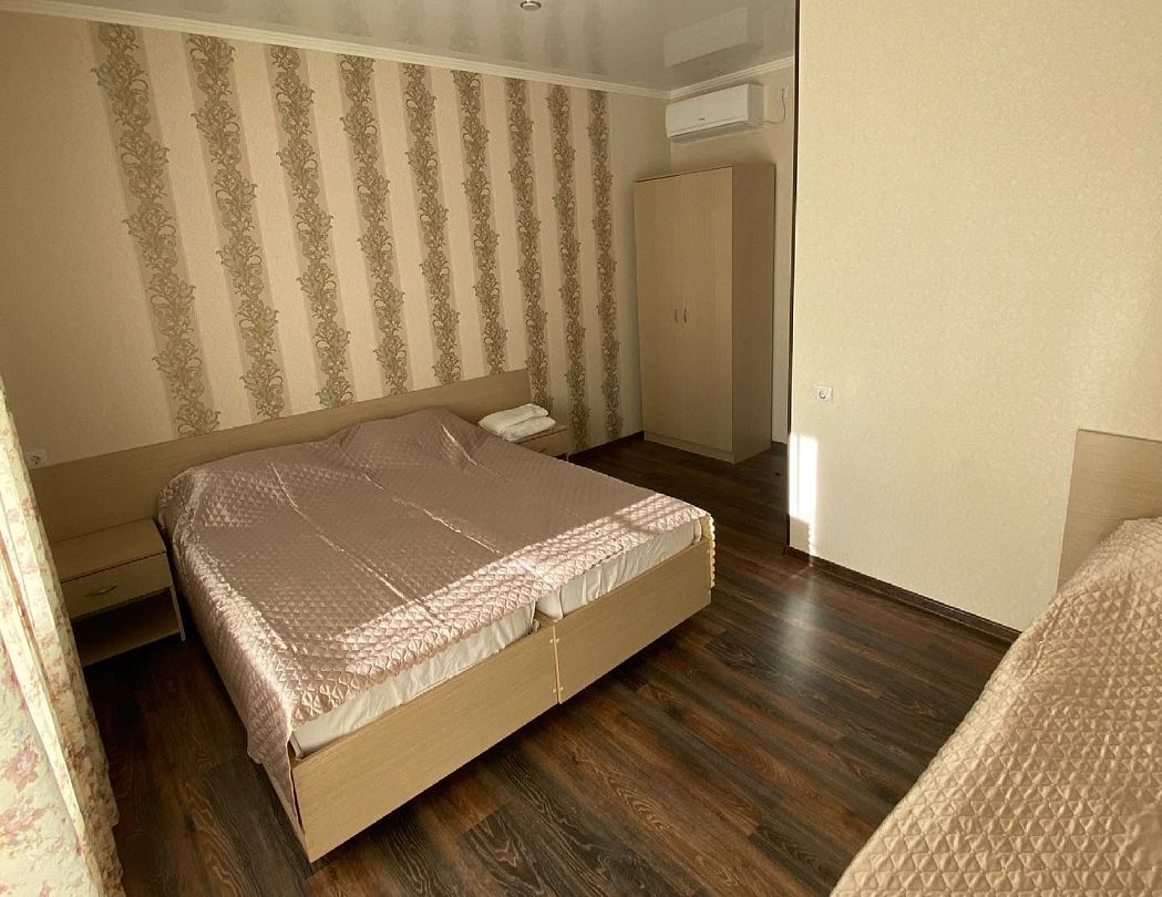 В гостевом доме 2-4 местные номера категории стандарт. В каждом из них – мебель, телевизор, кондиционер, индивидуальный санузел с душем и туалетными принадлежностями.