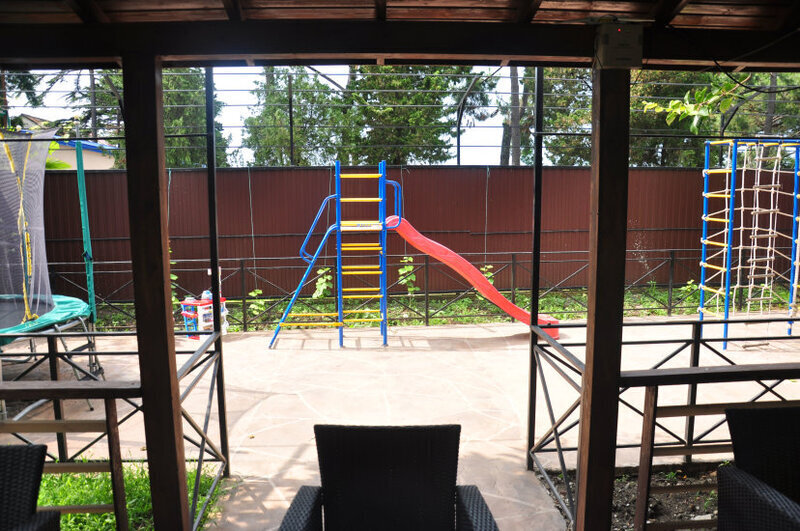На территории дома есть кафе-столовая с детским меню, небольшой бассейн для детей, детская площадка и зона отдыха под тенью виноградника.