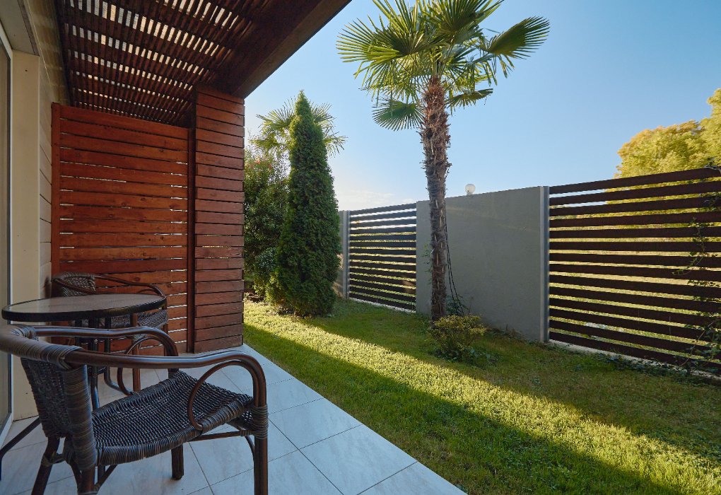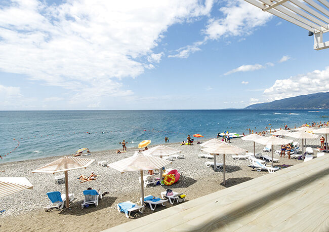 Пляж вблизи отеля песчано-галечный, благоустроенный, со своим баром «Жажда», где подают не только разные напитки, но и закуски, поэтому у моря можно провести столько времени, сколько захочется.