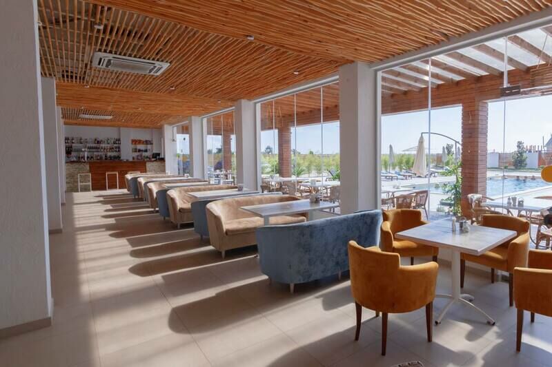 При ресторане есть бар, где можно заказать ароматный кофе или выпить авторский коктейль на террасе ресторана.