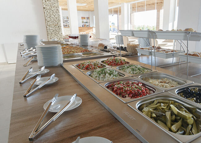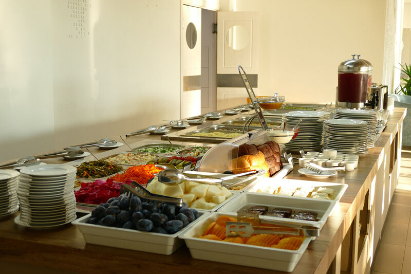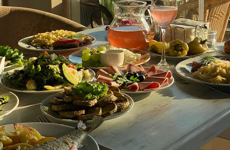 Ресторан Акватория работает по системе «шведский стол» при загрузке отеля от 30-ти человек и по системе «порционное меню» при загрузке менее 30-ти человек.