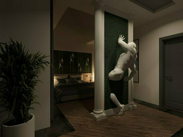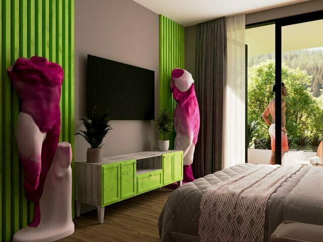Философия арт-отеля - показать гостям Абхазии удивительный мир талантов, которых объединяет любовь к искусству. Смысловым центром отеля являются арт-объекты абхазских художников, дизайнеров, архитекторов, скульпторов и фотографов.