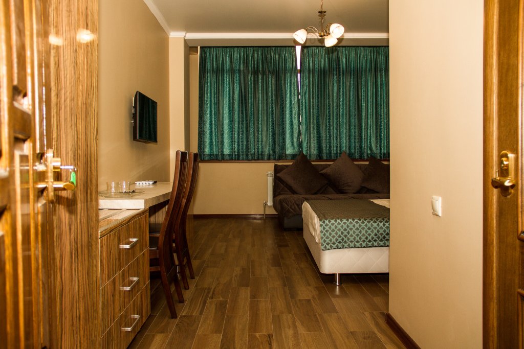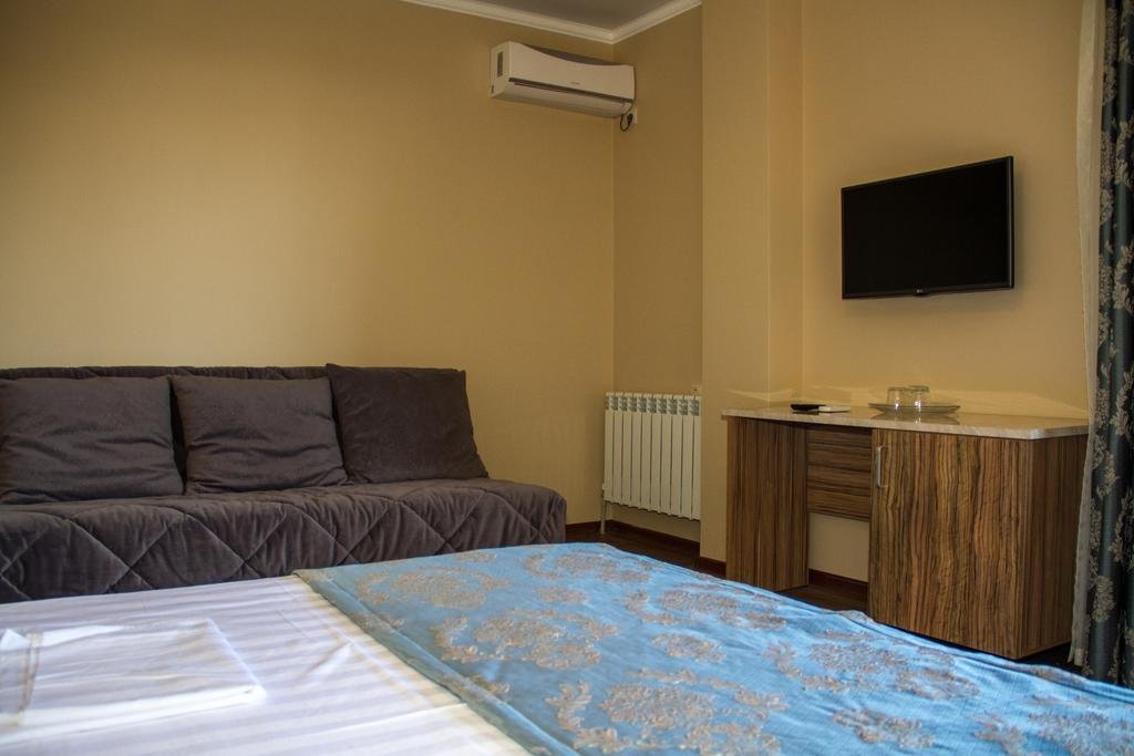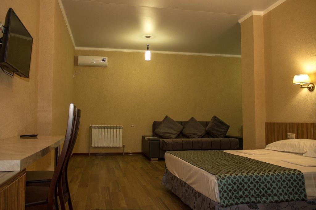 Номер уютно обставлен и оснащён необходимым, чтобы отдохнуть после долгого и насыщенного дня. Имеются телевизор. Перечисленные услуги есть не во всех номерах.