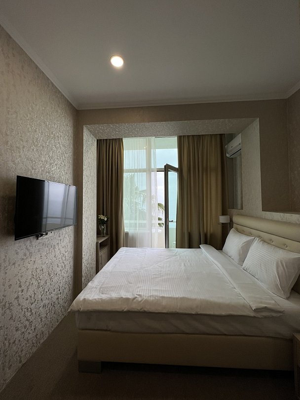 Вы можете забронировать простые, но очень уютные номера, которые обустроены всем необходимым для комфортного проживания. Есть номера с балконами и без.