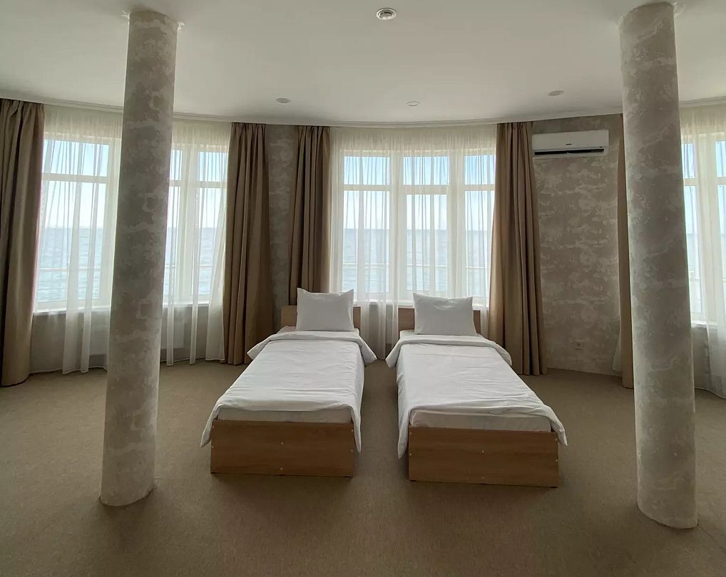 одна 2-спальная кровать и две 1-спальные кровати, в части номеров отсутствует окно во второй комнатеСпальные места