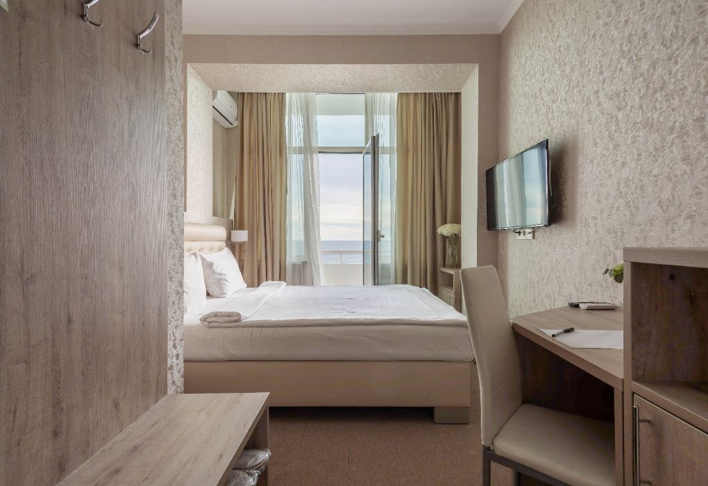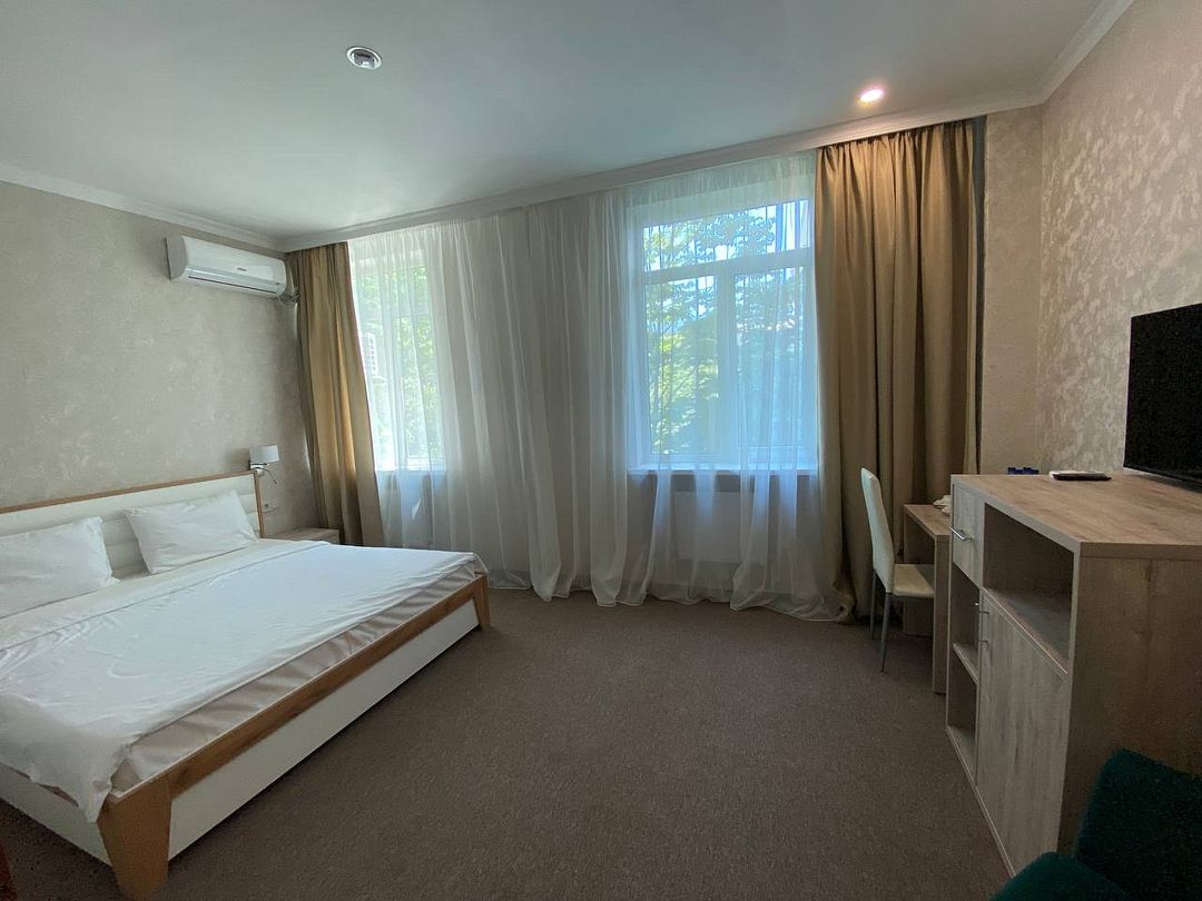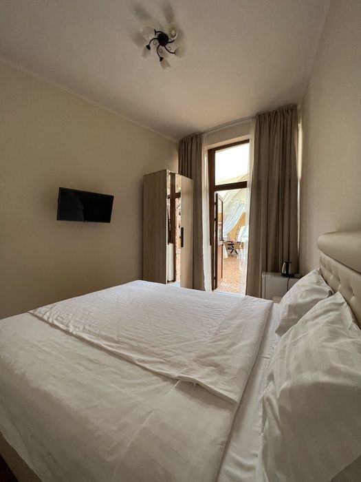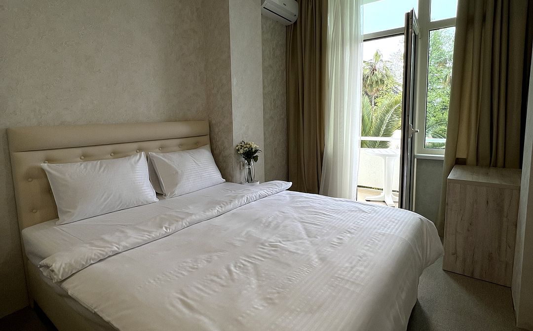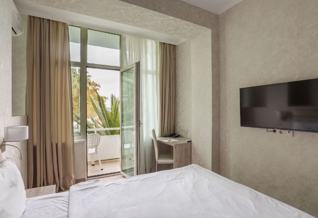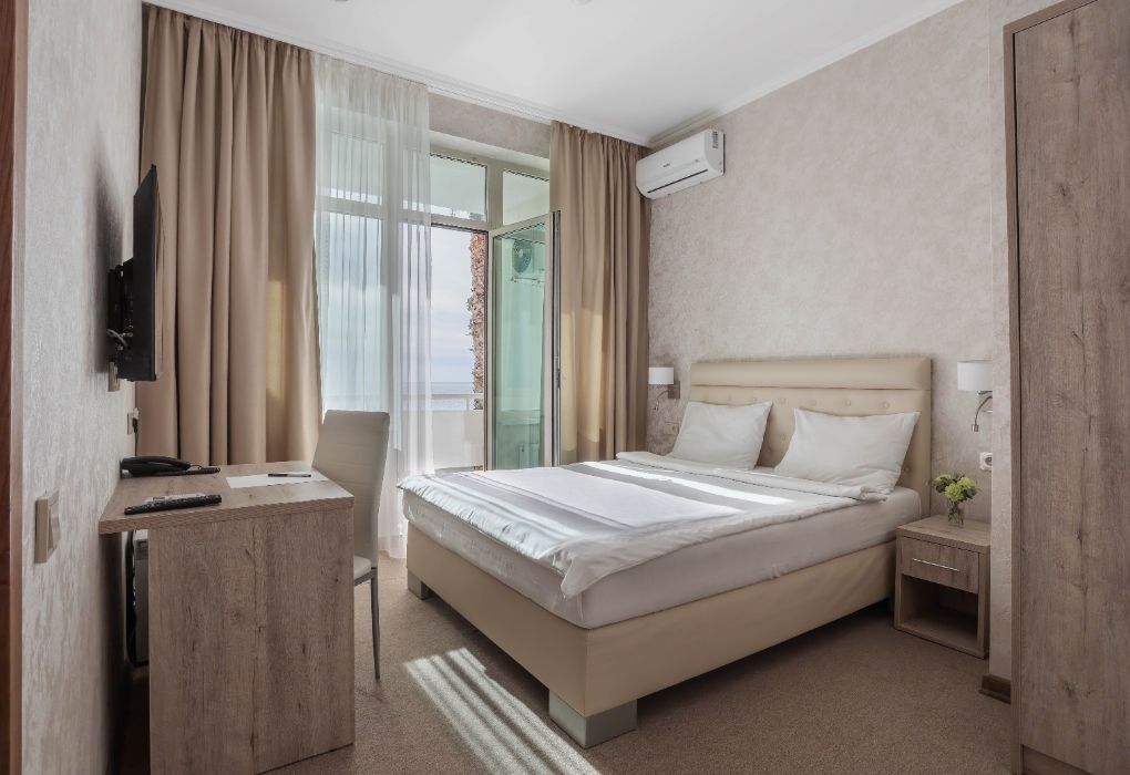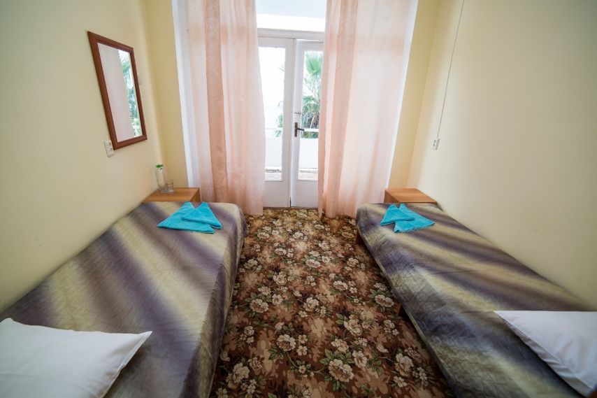 Вы можете забронировать простые, но очень уютные номера, которые обустроены всем необходимым для комфортного проживания. Есть номера с балконами и без.