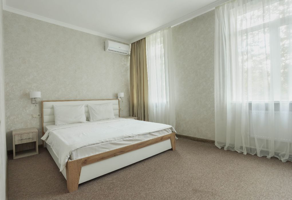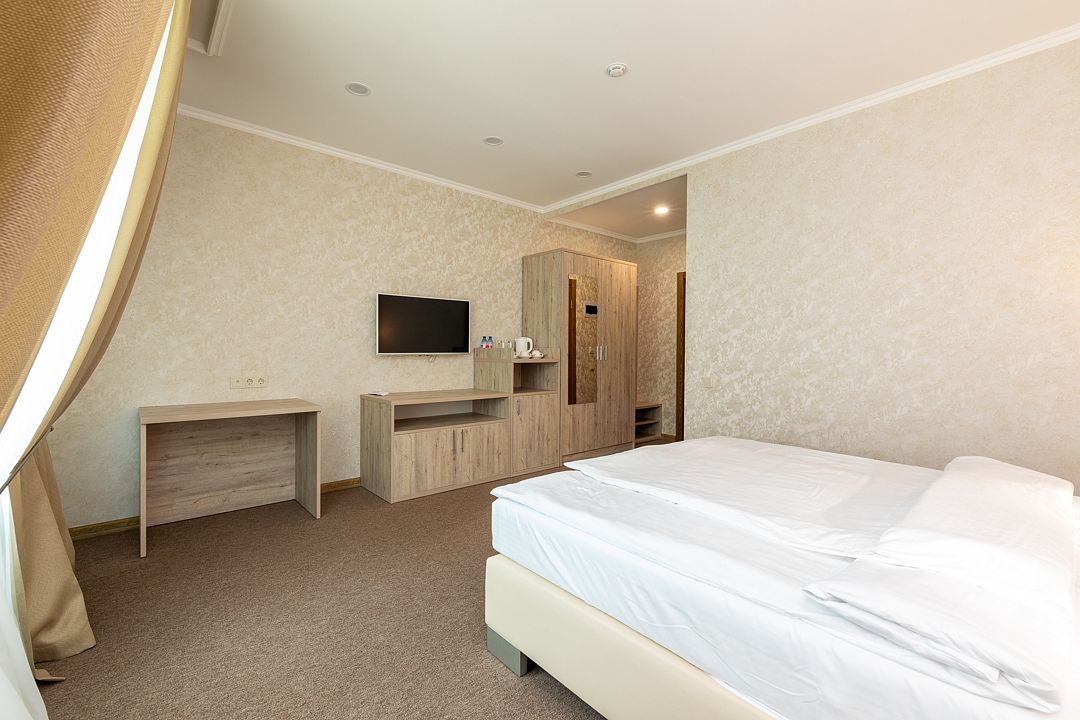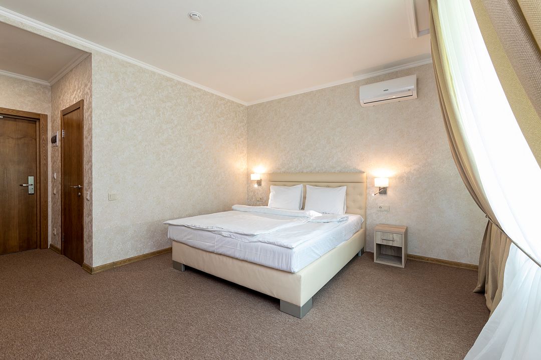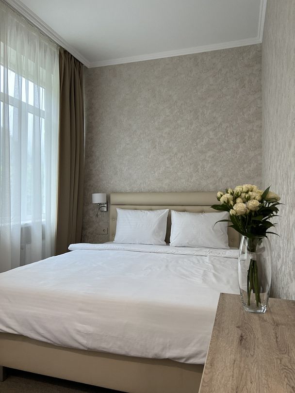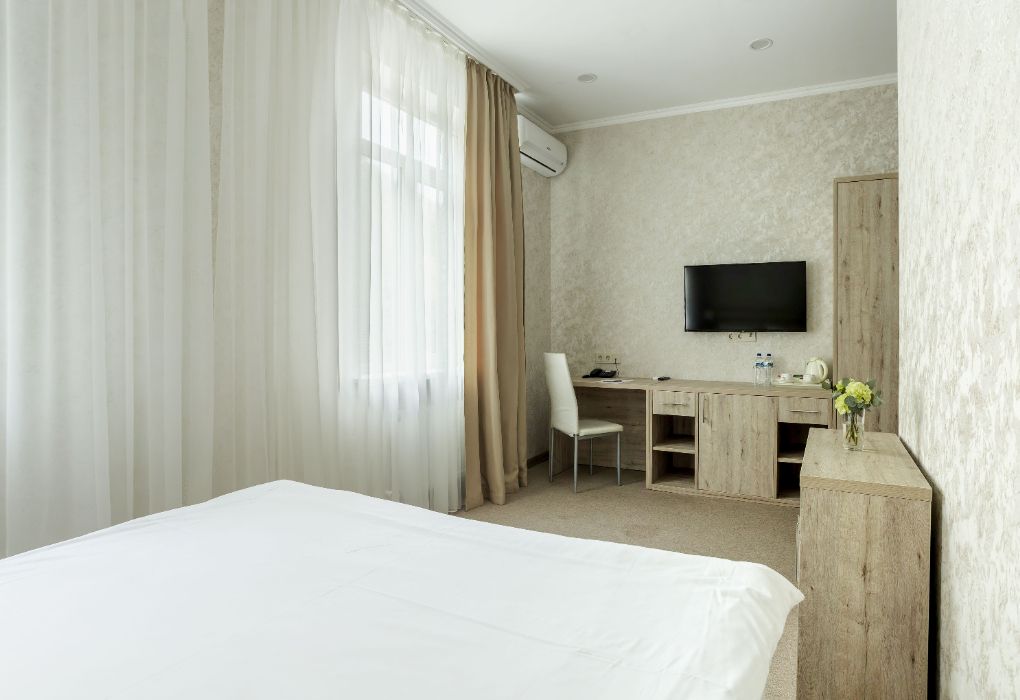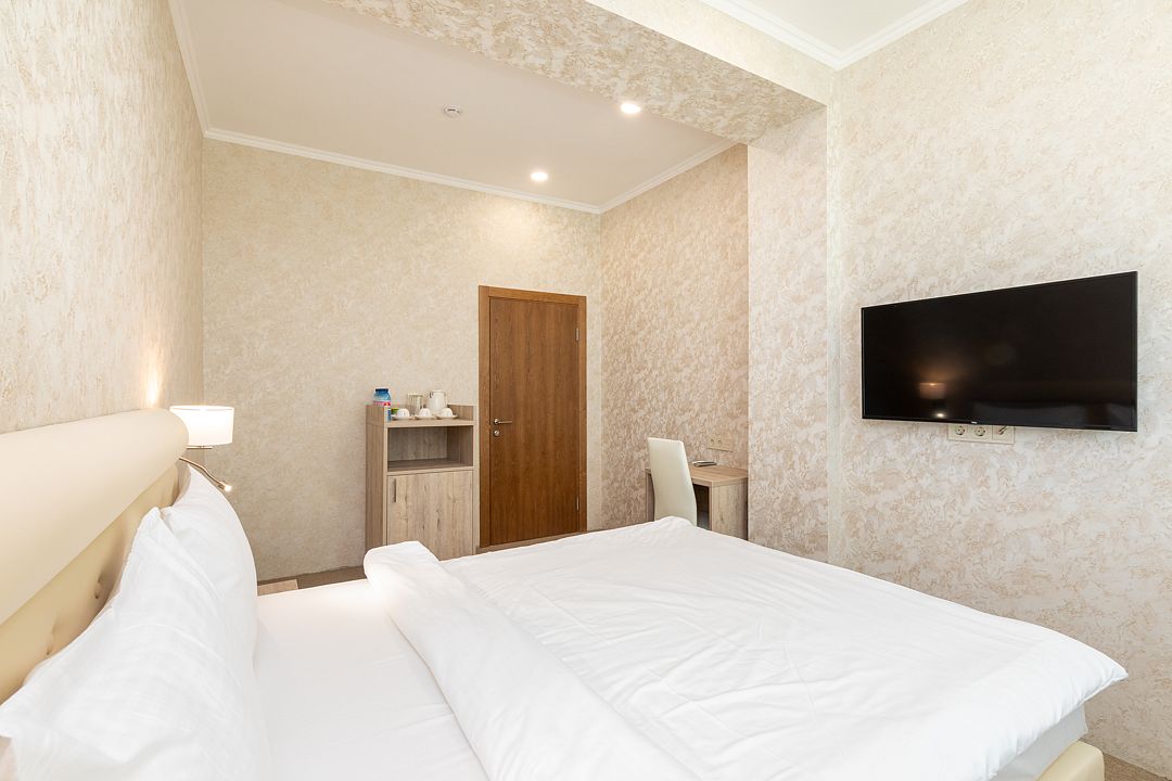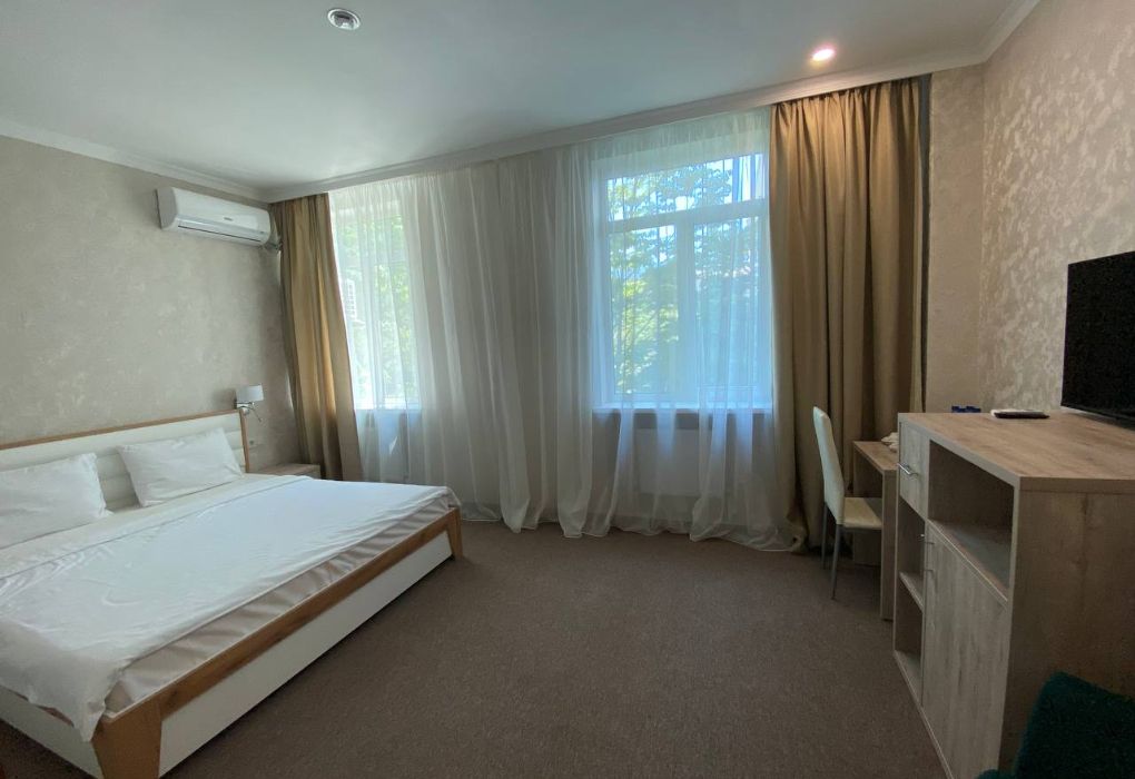 Вы можете забронировать простые, но очень уютные номера, которые обустроены всем необходимым для комфортного проживания. Есть номера с балконами и без.