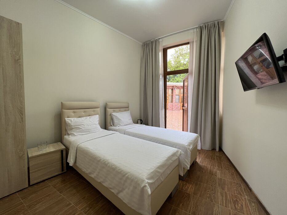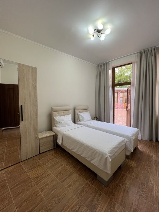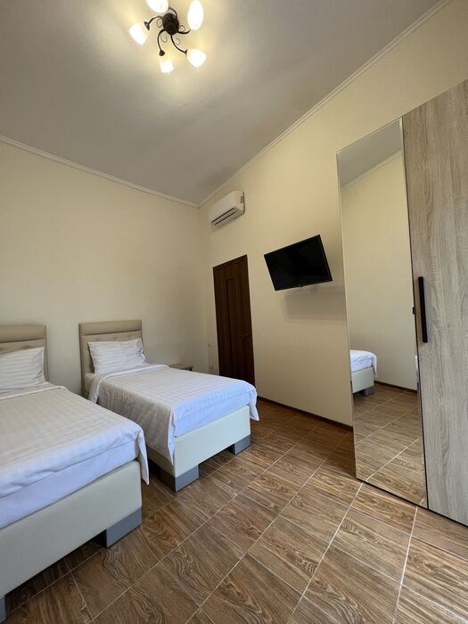 одна 2-спальная и две 1-спальные кровати, в части номеров отсутствует окно во второй комнатеСпальные места