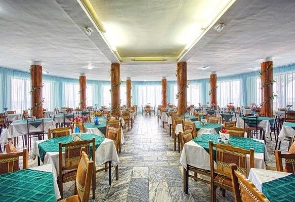 В столовой пансионата представлены разнообразные блюда «Шведского стола» по системе отдыха "Все включено", имеется спортивная и детская площадка открытый бассейн и собственный пляж прямо у корпуса.