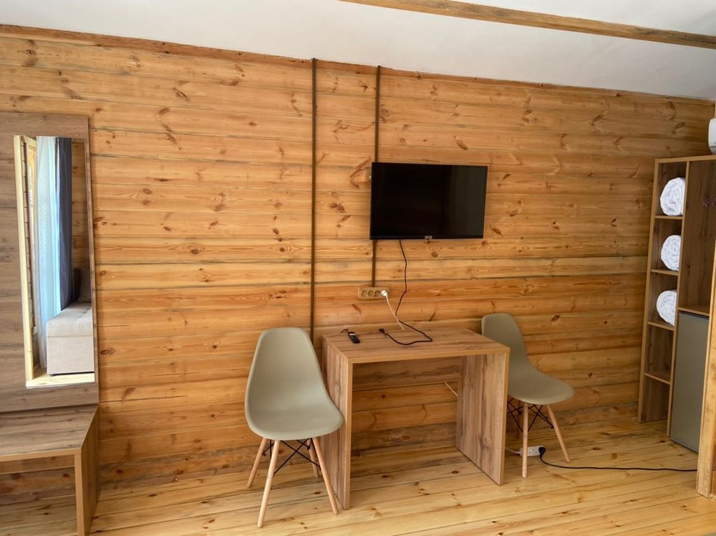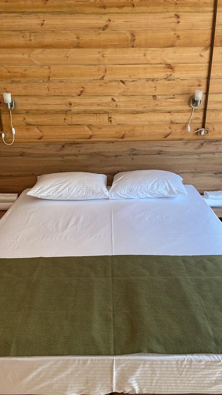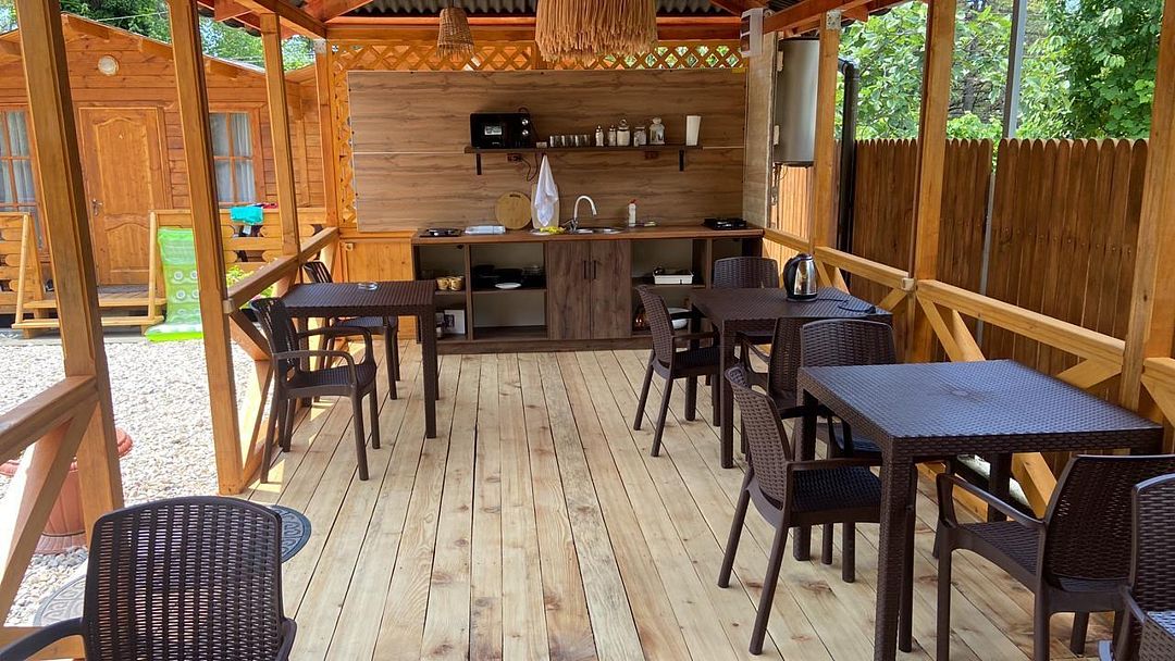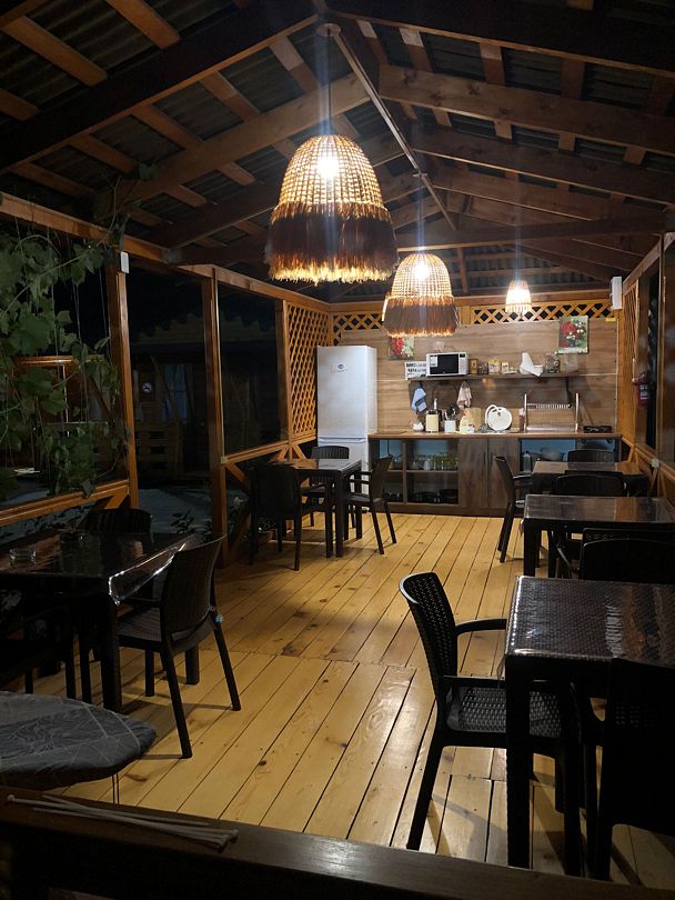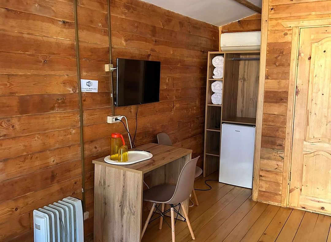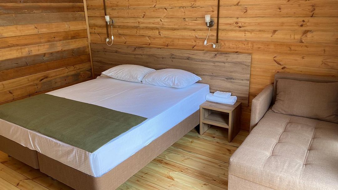 Номерной фонд состоит из 6 коттеджей 2022 года постройки со своими террасами. В каждом домике есть телевизор со спутниковыми каналам, кондиционер, холодильник, сан. узел, а также необходимая мебель.