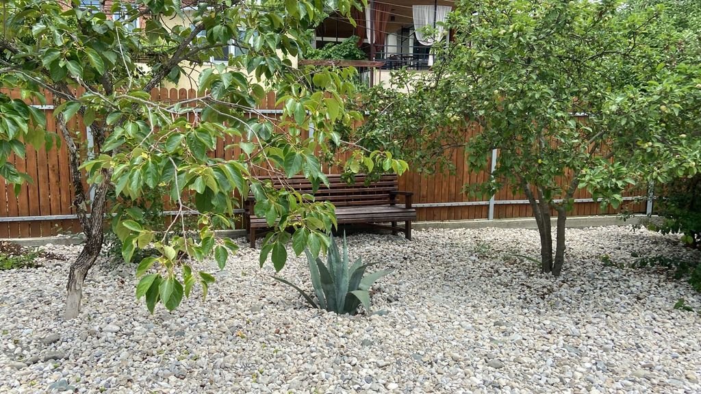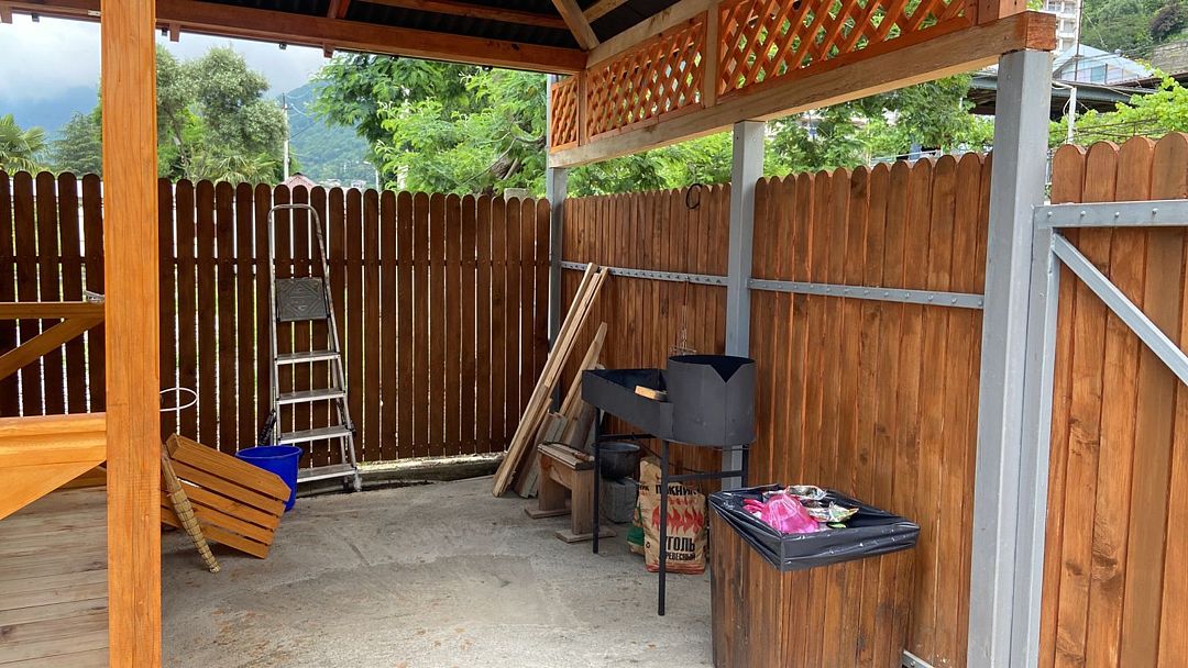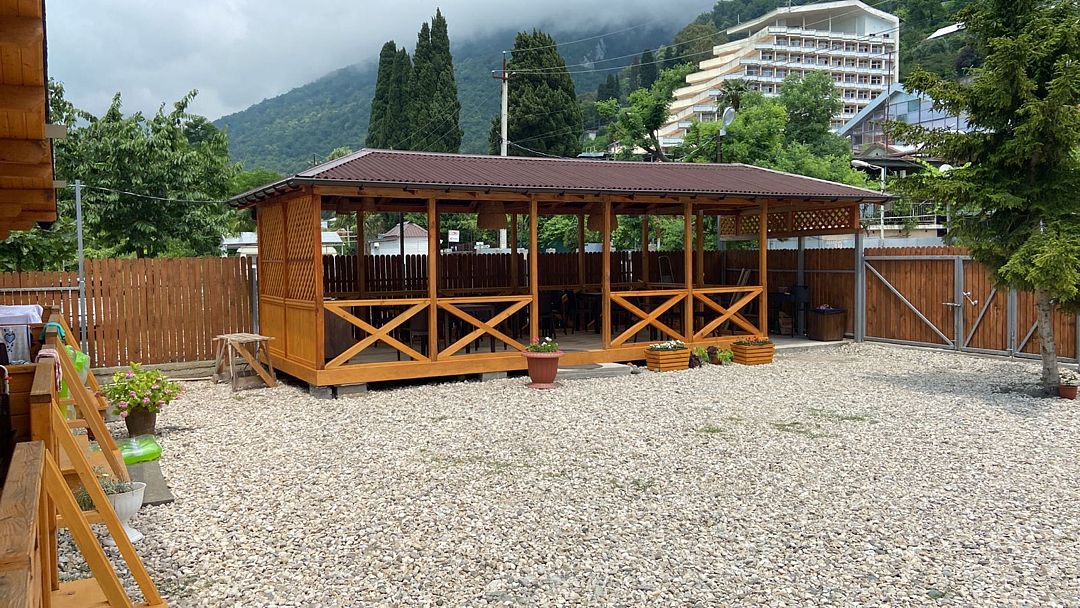 На территории предусмотрена терраса с общей кухней, оборудованная, всем необходимым, есть мангал и парковка. Для удобства гостей предоставляются стиральная машина, гладильная доска с утюгом. Можно заказать трансфер или экскурсии.
