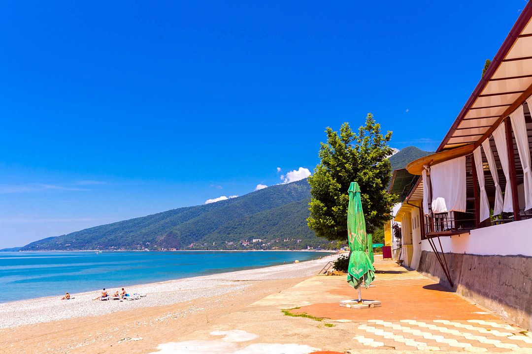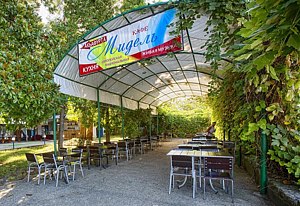 Летнее кафе «Мидель-Гагра», расположенное на берегу моря, предлагает гостям приятно провести время на свежем воздухе. В меню представлены как абхазские, так и европейские блюда, а также освежающие напитки, мороженое и выпечка — все, что нужно для идеального пляжного отдыха.