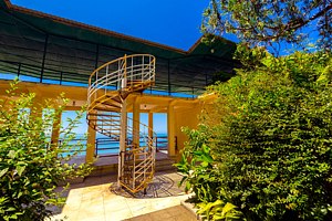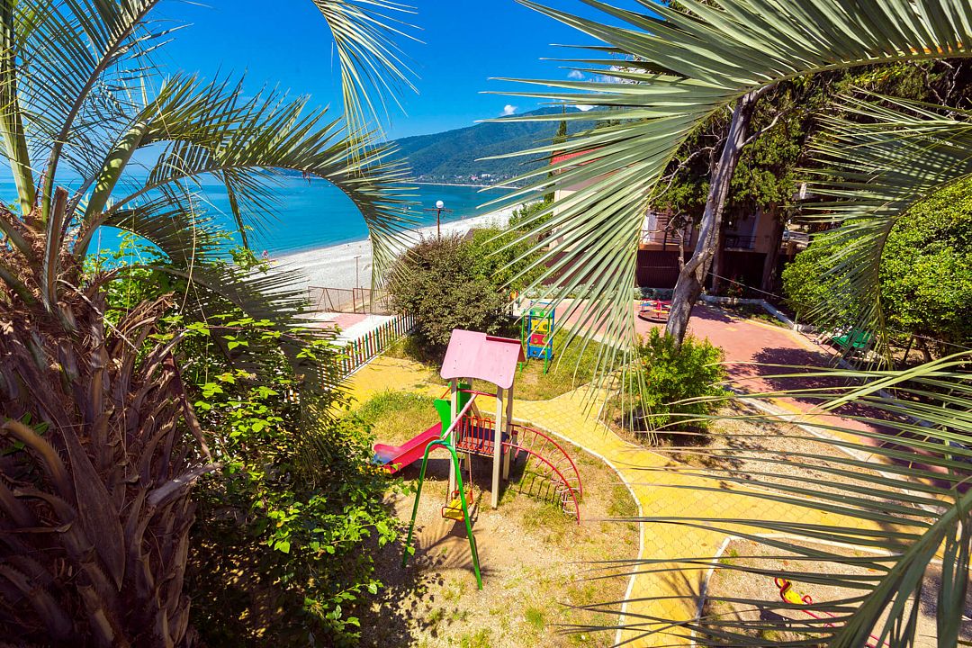 Территория пансионата живописна и ухожена: тенистый сад с экзотическими растениями и уютные лавочки приглашают к пикникам на мангале. Особое место занимает «Уголок мечтателя» — открытая комната отдыха на втором этаже, откуда открывается захватывающий вид на бескрайний морской горизонт. Здесь, в тишине и покое, можно насладиться красотой природы и провести время в кругу семьи, погружаясь в атмосферу умиротворения и гармонии.