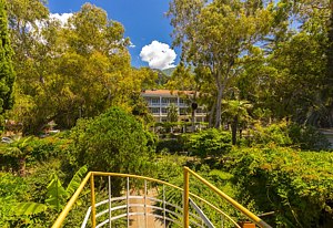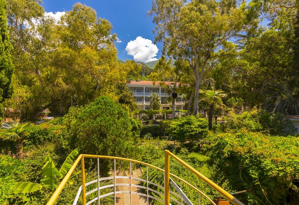 Экзотический сад пленяет своим уединением среди величественных пальм и стройных эвкалиптов, чьи кроны шелестят под легким ветерком. Воздух здесь пропитан целебным морским воздухом и ароматами цветущих мимоз, наполняя сад неповторимыми ароматами и даря ощущение легкости и умиротворения.