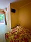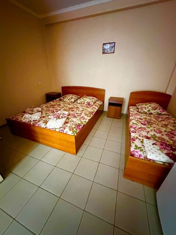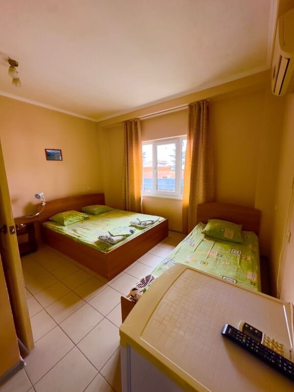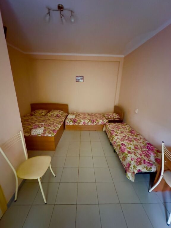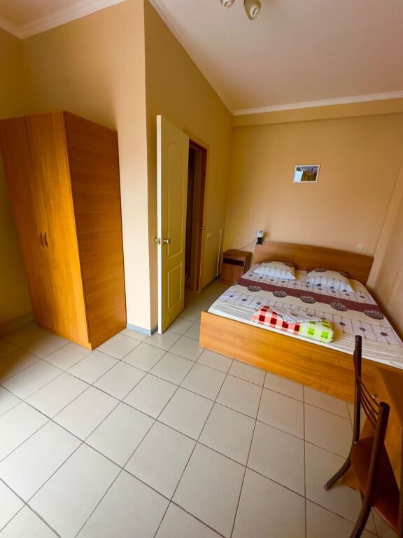 У нас был двухместный номер выходил на солнечную сторону, на дорогу,шумно,если окно открыть, а так с кондиционером хорошо.Хозяева,как пчелки с утра до вечера трудяться , чисто всегда,на пятыйдень меняли белье,полотенца тоже выдавали, и уборка в номере.