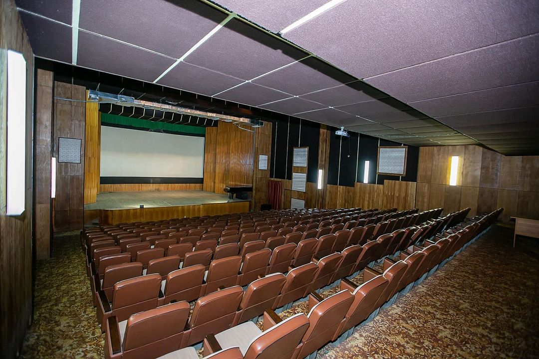 В кинозале каждый день в 15:00 показывают мультфильм для детей, а в 20:00 — художественный фильм для взрослых (кроме одного выходного в неделю).
