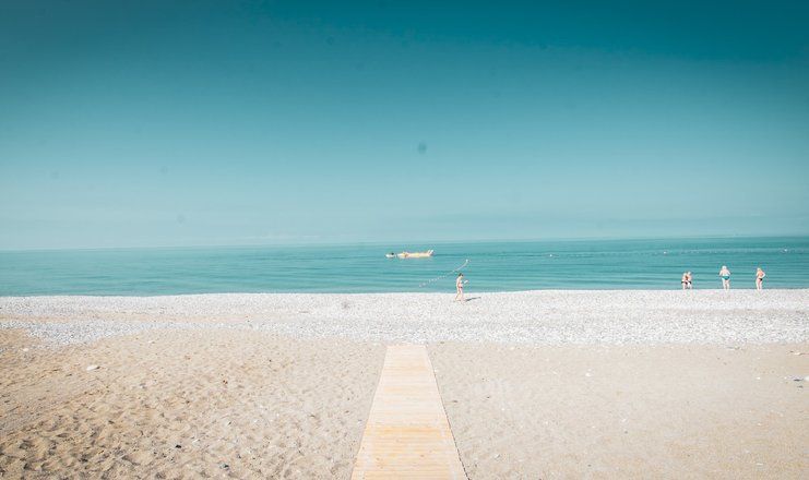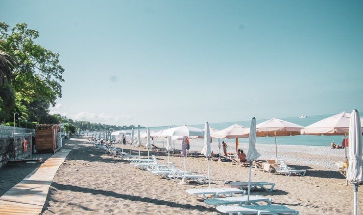 Тип пляжа: песчано-галечный, собственный, оборудованныйИнфраструктура: полотенца, лежакиУдобства на пляже: душ, санузелРасположение: 10 м, в пешей доступности -