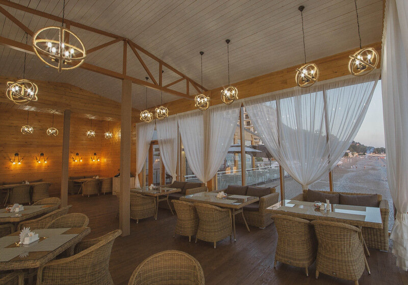 Ресторан, расположился на берегу черного моря. Здесь вы погрузитесь в атмосферу уюта, доброжелательности с панорамными видами на море. А также насладитесь многогранной свежей и яркой европейской кухней в солнечной стране Абхазия. Немаловажным фактором является шведский стол с трехразовым питанием для гостей. Разнообразие блюд и большой ассортимент выпечки и напитков приятно вас удивят и вкусно накормят.