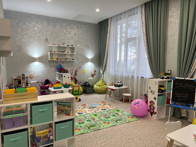Игровая комната наполнена светом и теплом. Множество игрушек и детское оформление вызывают живой интерес у малышей. Здесь они весело и занимательно проведут время с высококвалифицированным педагогом воспитателем а родители смогут отдохнуть и насладиться отдыхом в поистине райском месте.