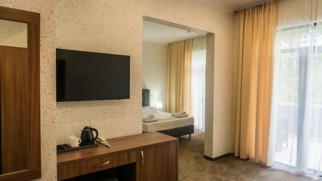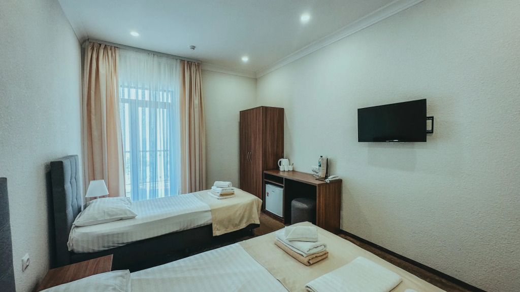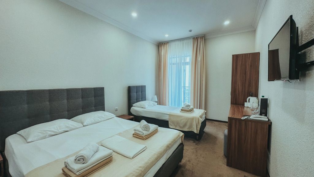 Трансфер супер, когда приземлились попросили подождать около часа, предложили подняться в зону ожидания в аэропорте, потом загрузили в большой автобус, после того как прошли границу у них случилась какая-то задержка, и специально для нас, отдыхающих в Нарте нам предоставили машину и увезли в отель, доехали с комфортом. Обратно тоже на микроавтобусе ехали с пассажирами на наш рейс, все было быстро и удобно. Сам отель нам тоже очень понравился! Номер и ванная чистые, все убрано, уборка и бутылка с водой каждый день, вид с балкона шикарный, отдельные полотенца для бассейна и море предоставляли, телевизор и вай фай работает. Из корпуса выходишь сразу море, ресторан с шведской линией в двух шагах, бассейн с другой стороны, по обе стороны также рестораны с кавказской кухней и европейский.