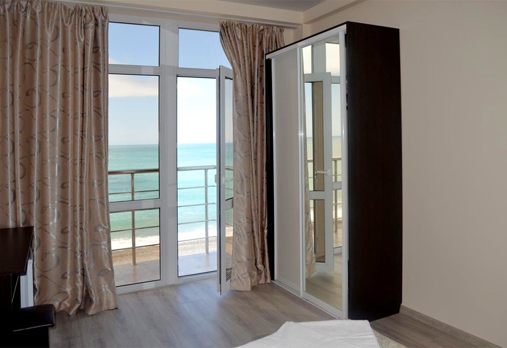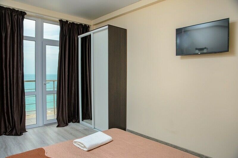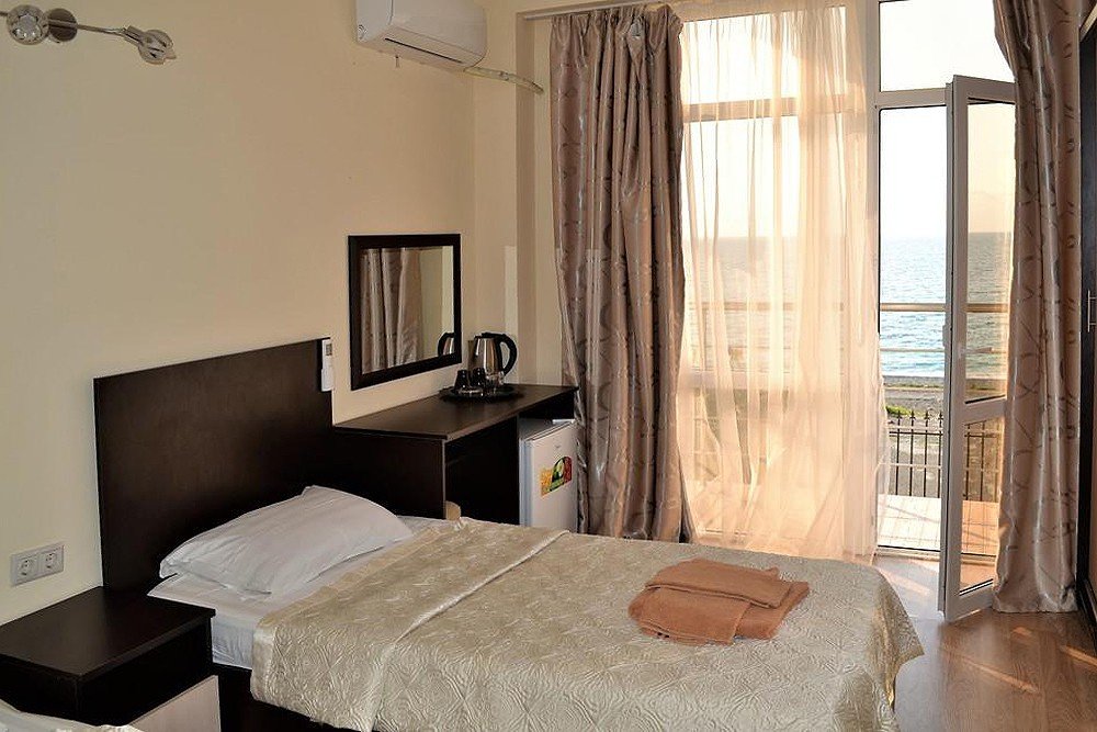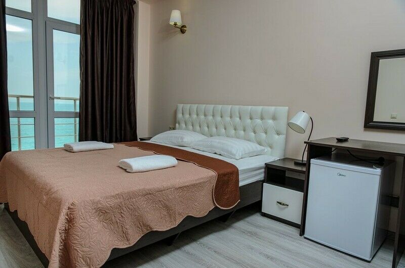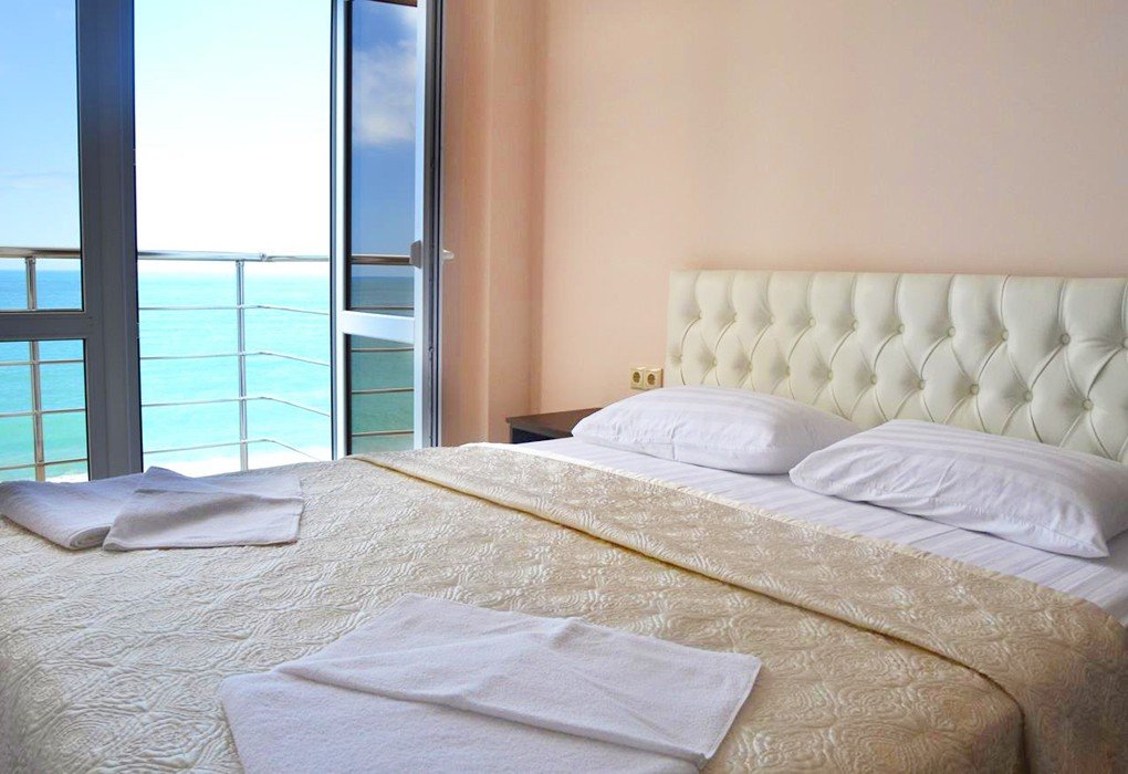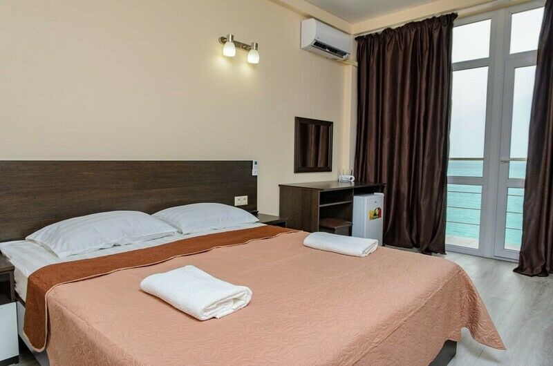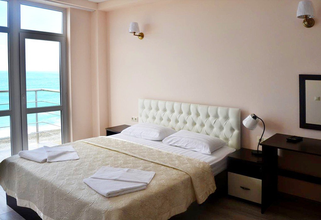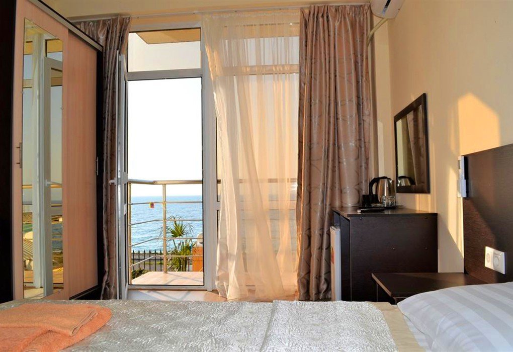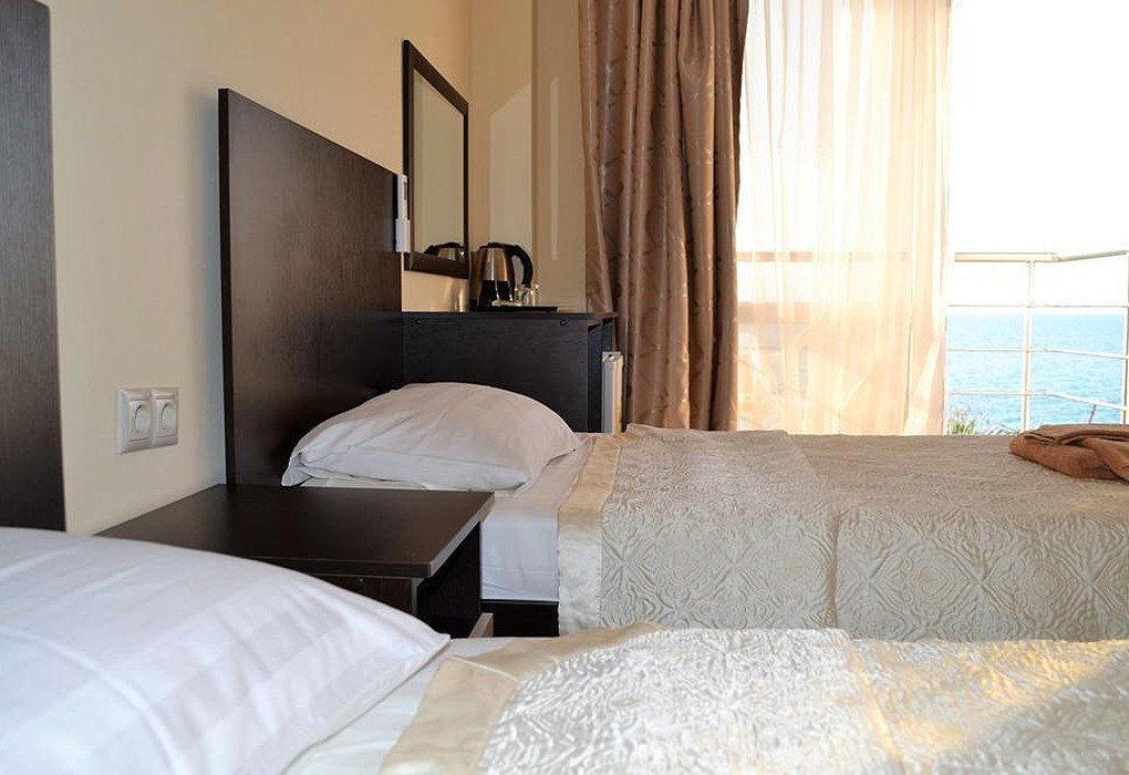 Трехэтажный отель, огороженный от посторонних, имеет собственную благоустроенную территорию с парковкой у корпуса. Номера «стандарт» и «полулюкс» предназначены для пребывания семей с детьми или дружеских компаний: все комнаты просторны, оформлены в спокойных светлых тонах, имеют выход на балкон с видом на море – за исключением первого этажа.