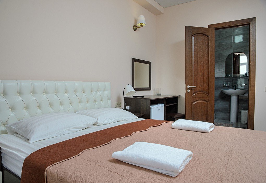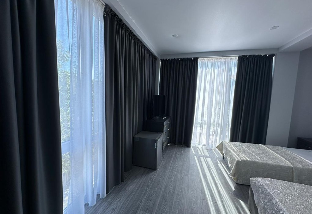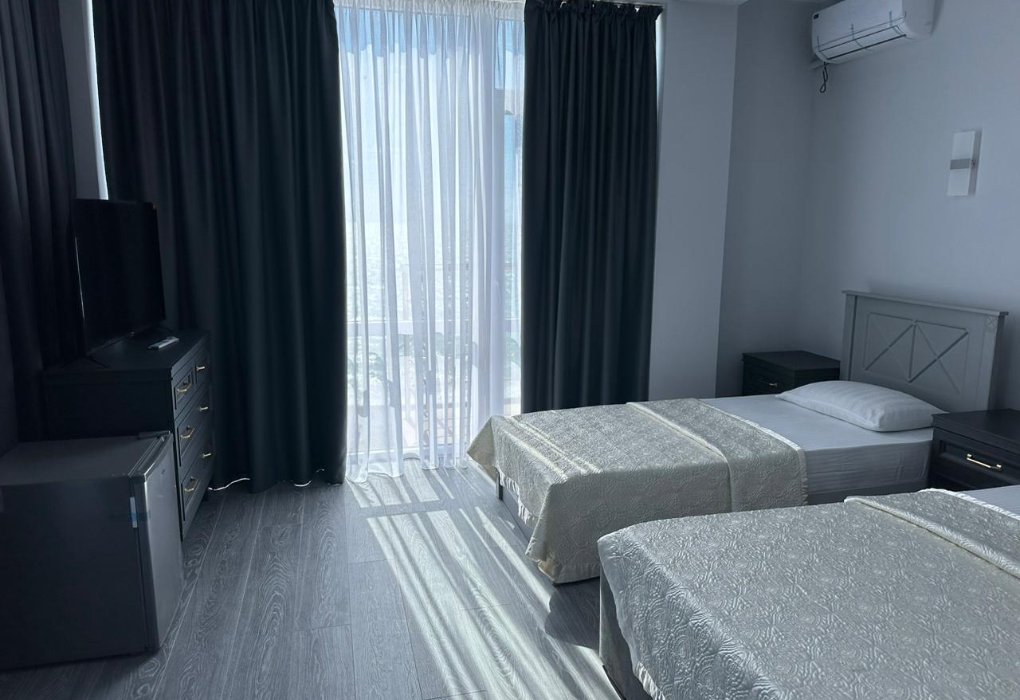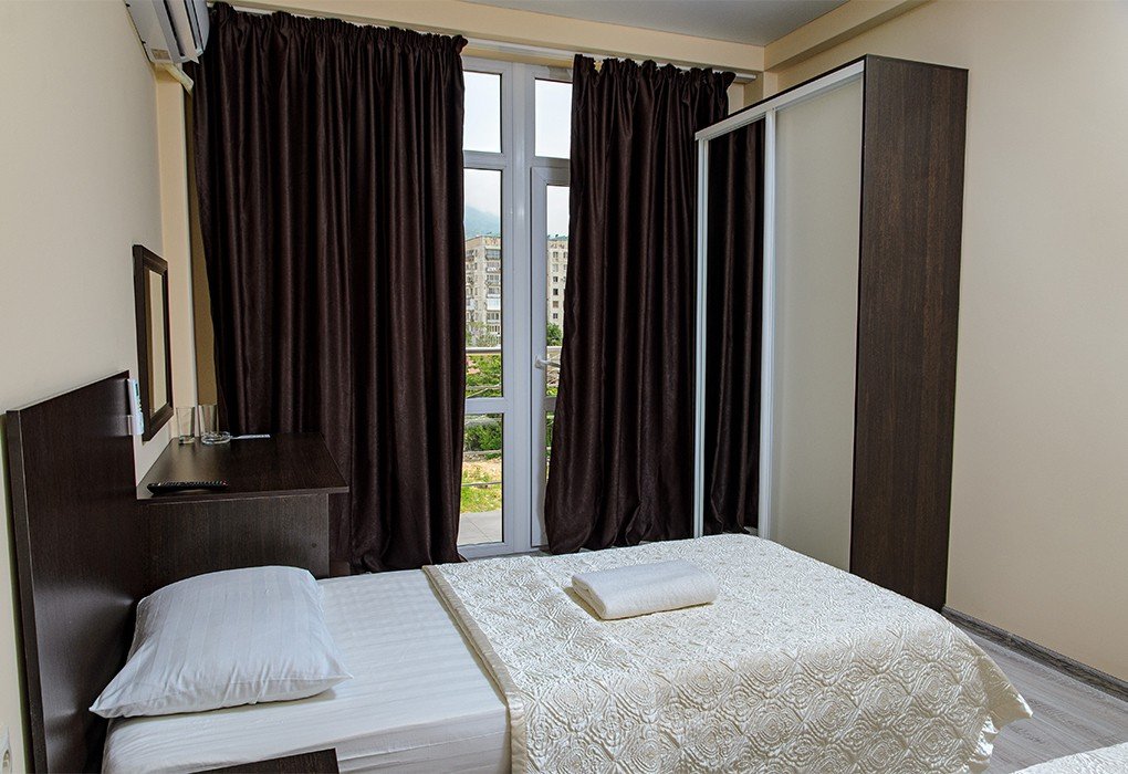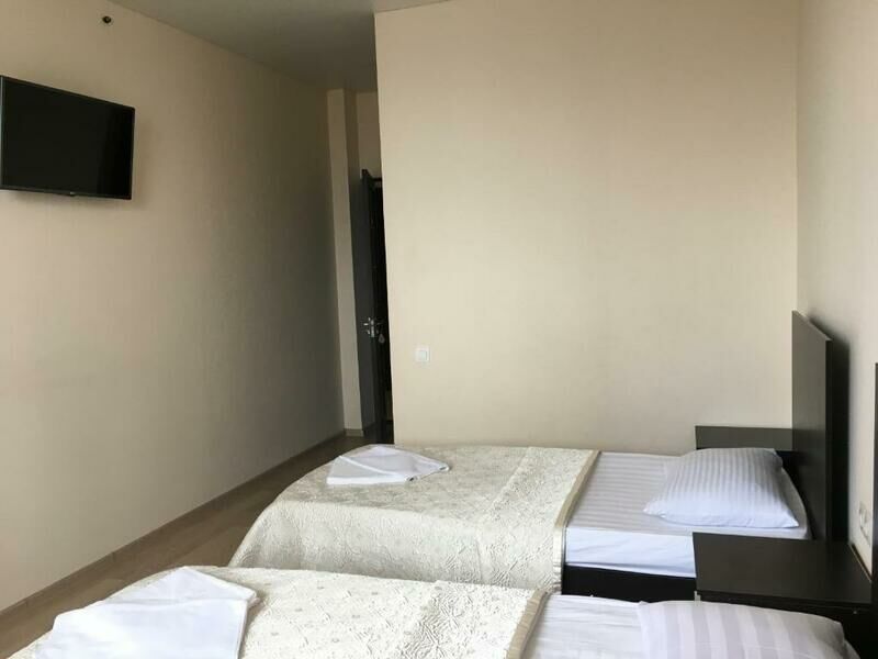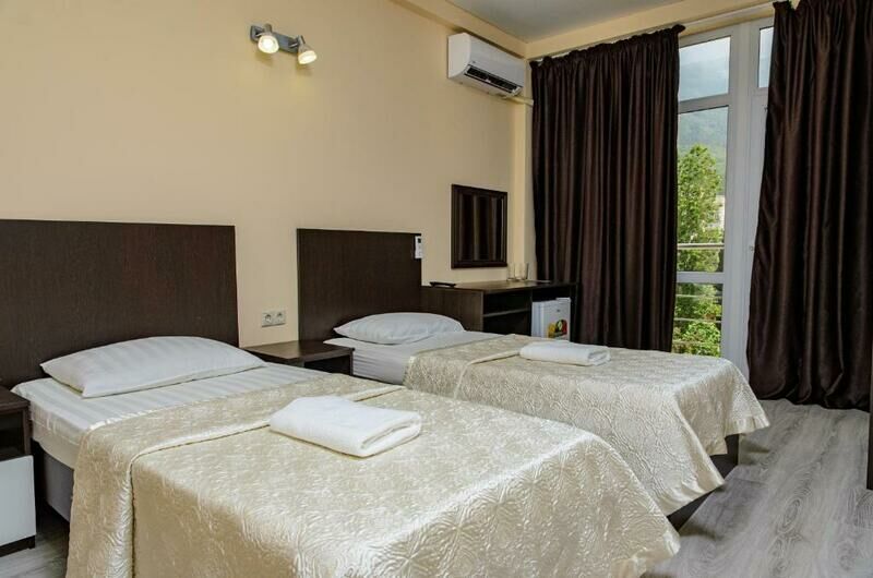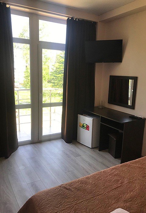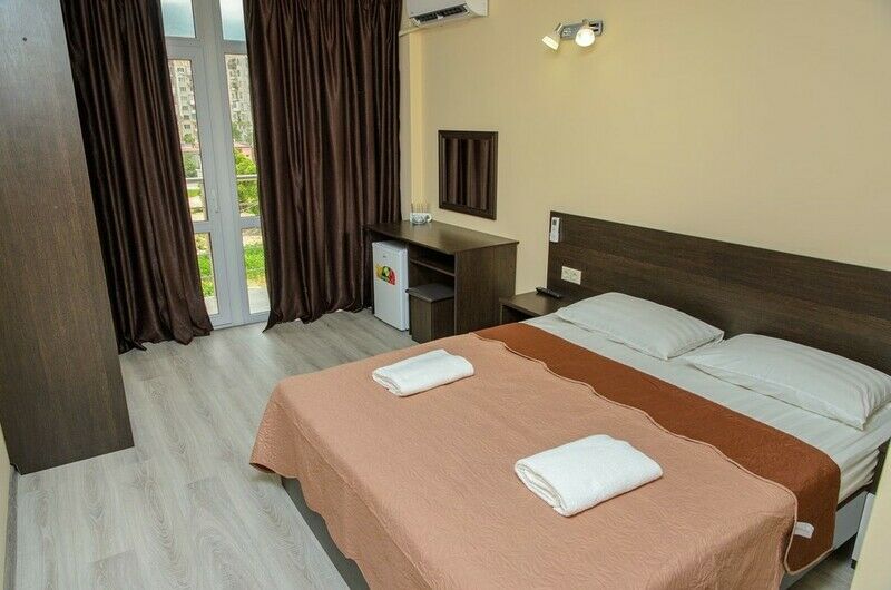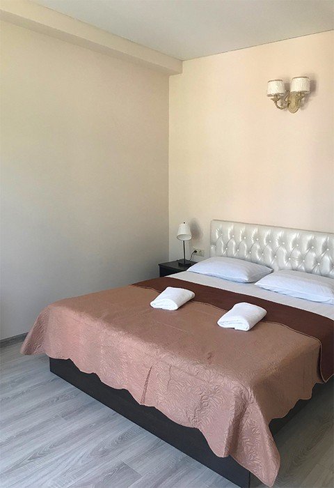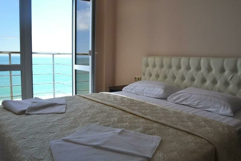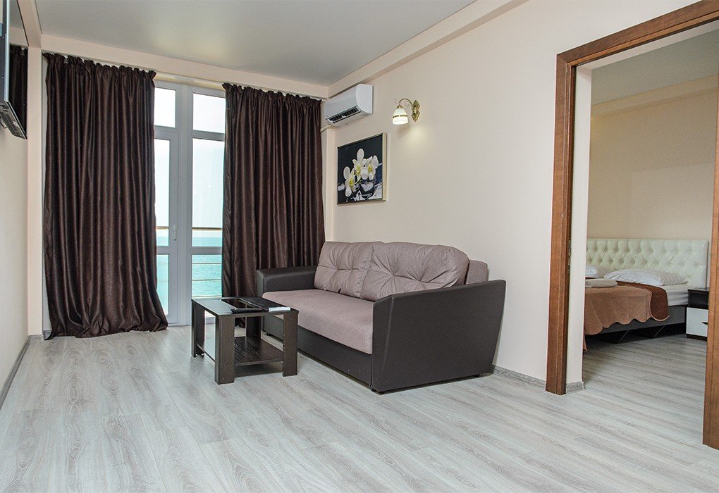 Трехэтажный отель, огороженный от посторонних, имеет собственную благоустроенную территорию с парковкой у корпуса. Номера «стандарт» и «полулюкс» предназначены для пребывания семей с детьми или дружеских компаний: все комнаты просторны, оформлены в спокойных светлых тонах, имеют выход на балкон с видом на море – за исключением первого этажа.