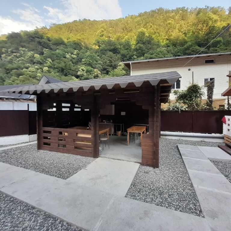 Место для тех, кто устал от соседей! «Частный дом Райские домики» находится в Гаграх, в 5 км от центра города. Рядом с коттеджем можно прогуляться. Неподалёку: Замок принца Ольденбургского, Крепость Абаата и Медицинский пляж в Старой Гагре.