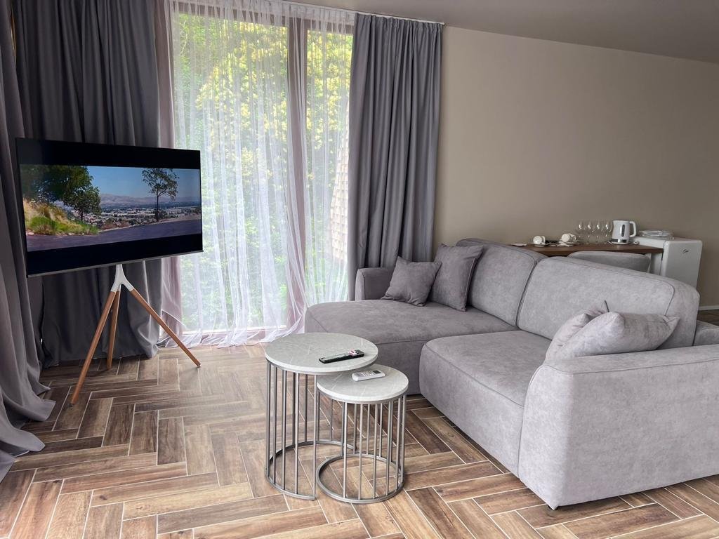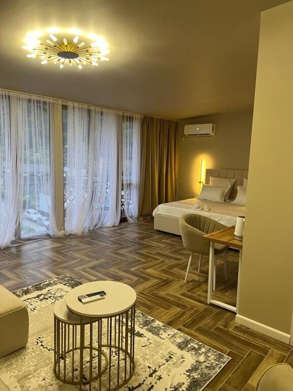 Новый уютный отель расположенный в ущелье среди живописных гор и бурной зелени. Тихо, свежий чистый воздух. Рядом горная река, где можно найти местечко и искупаться после жаркого дня)