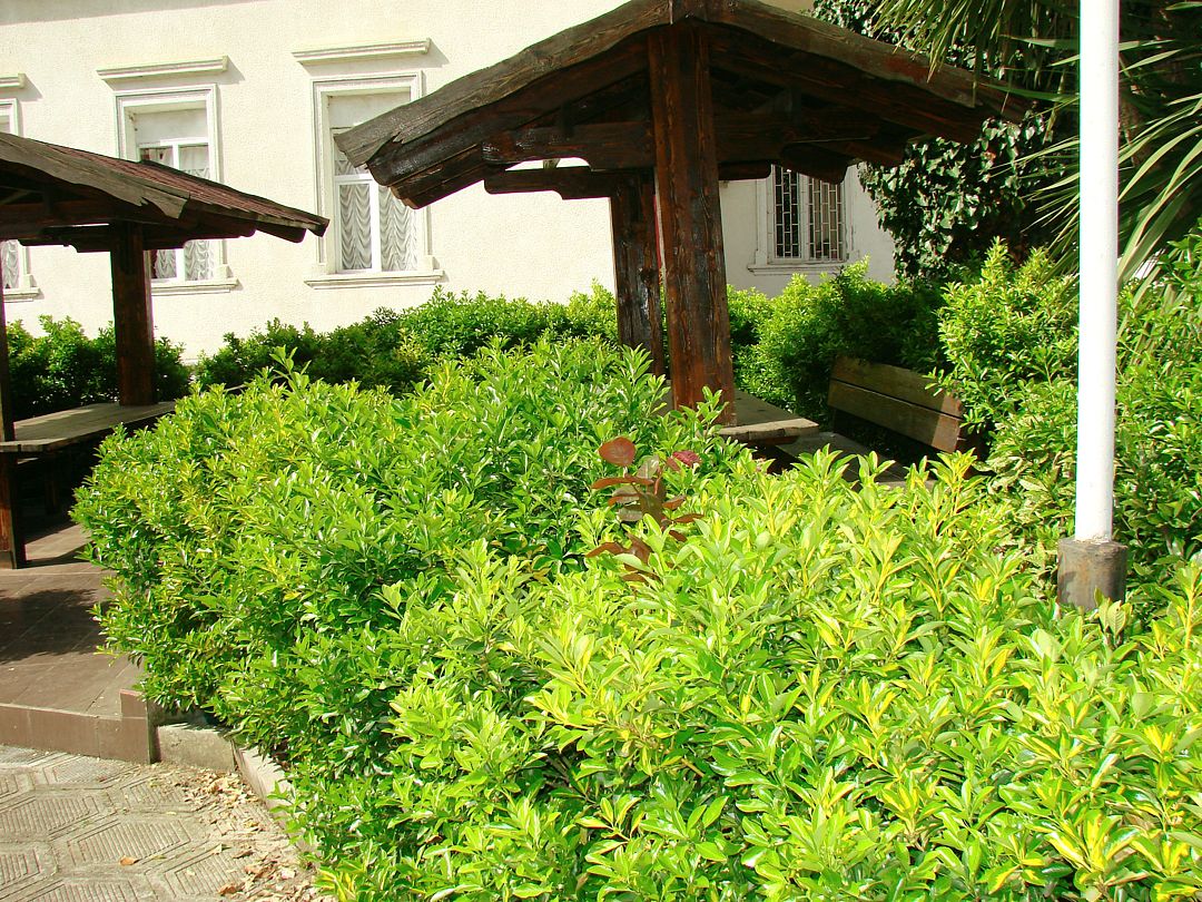 Во дворе есть фонтан и кафе. Завтраки проходят на веранде с видом на море.