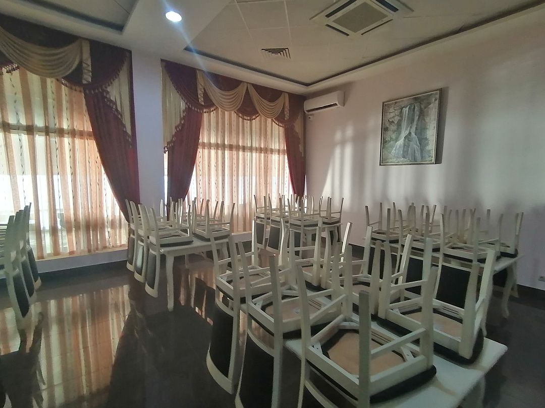 Превосходный ресторан на первом этаже радует гостей блюдами европейской и кавказской кухни. Столы накрываются в просторном зале с панорамными окнами.