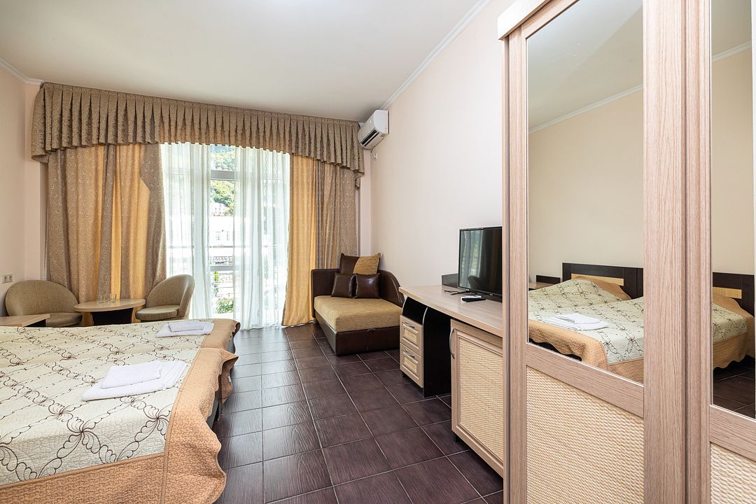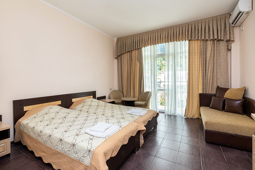 Путешествие с семьейКомфортно бюджетно отдохнули в РусланеНам понравилось проживание в отеле «Руслан». Номер категории стандарт был небольшой, но в нём было всё необходимое для комфортного отдыха. Номер был светлый, уютный, чистый, работал кондиционер. Было приятно вернуться сюда после пляжа/прогулки. В номере было широкое окно и балкон. Красивый вид на горы.