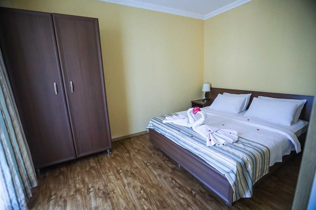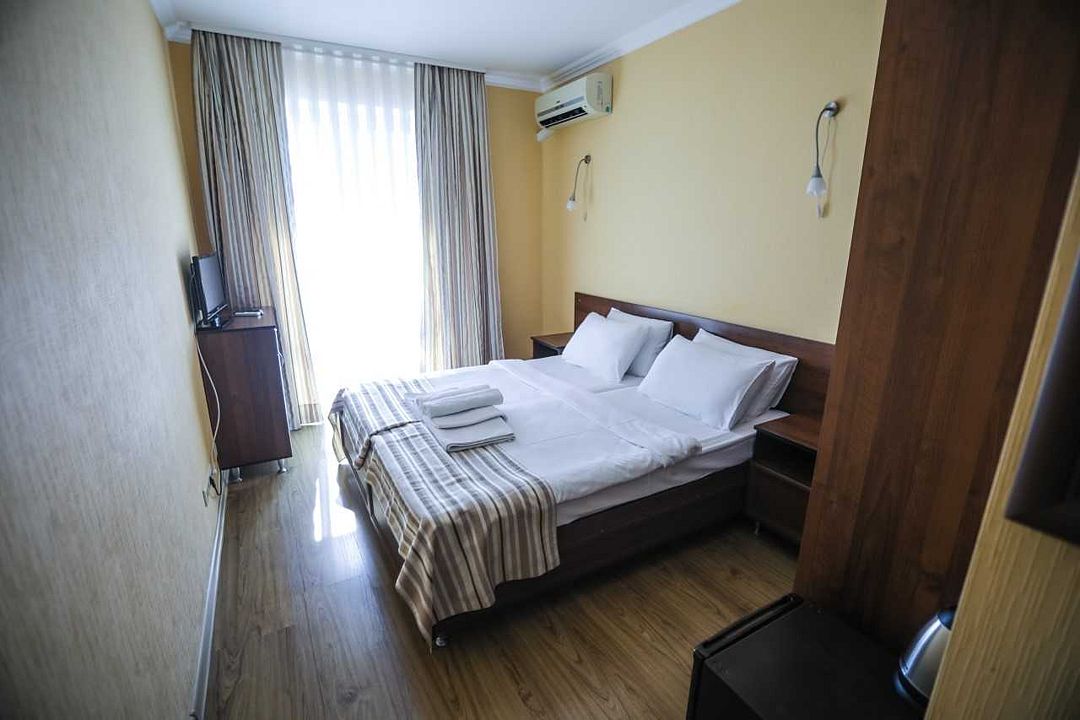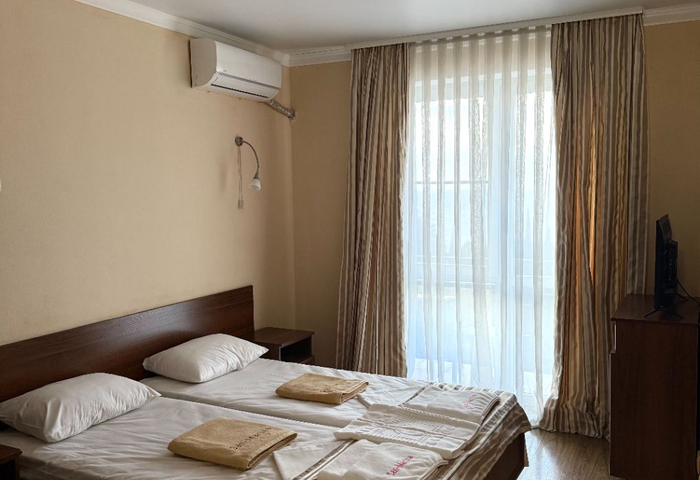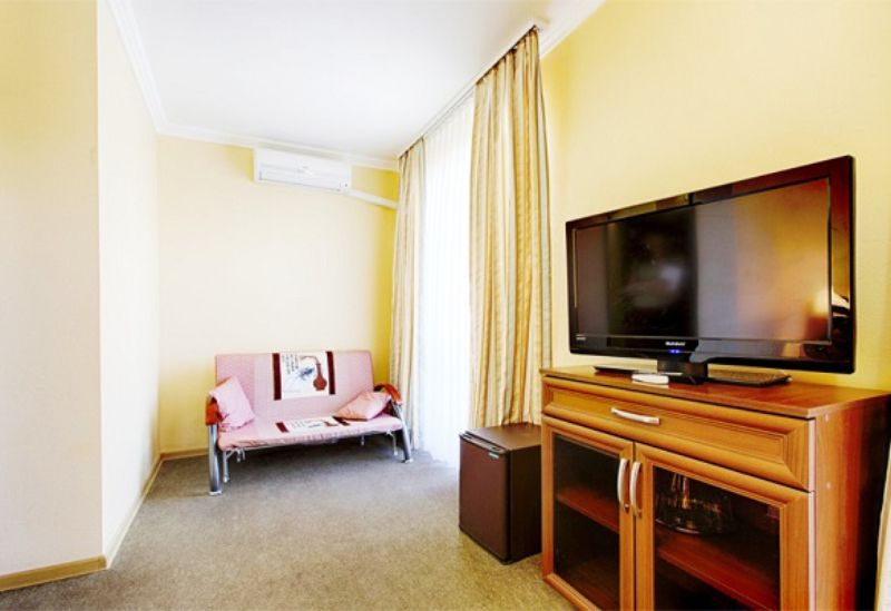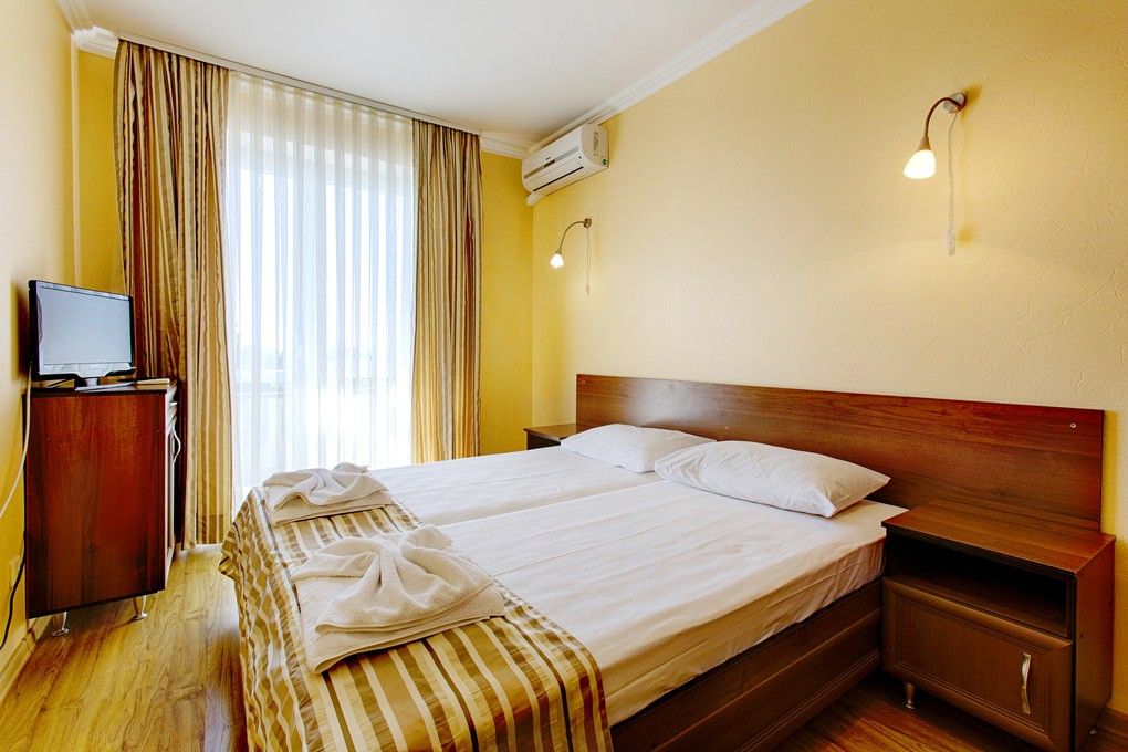 Из окон некоторых номеров открывается вид на море.В числе удобств номеров: кондиционер, холодильник, телевизор, а также санузел с ванной. Предоставляются дополнительные места в 2-местные номера, а значит, здесь удобно разместиться семейным туристам с детьми.