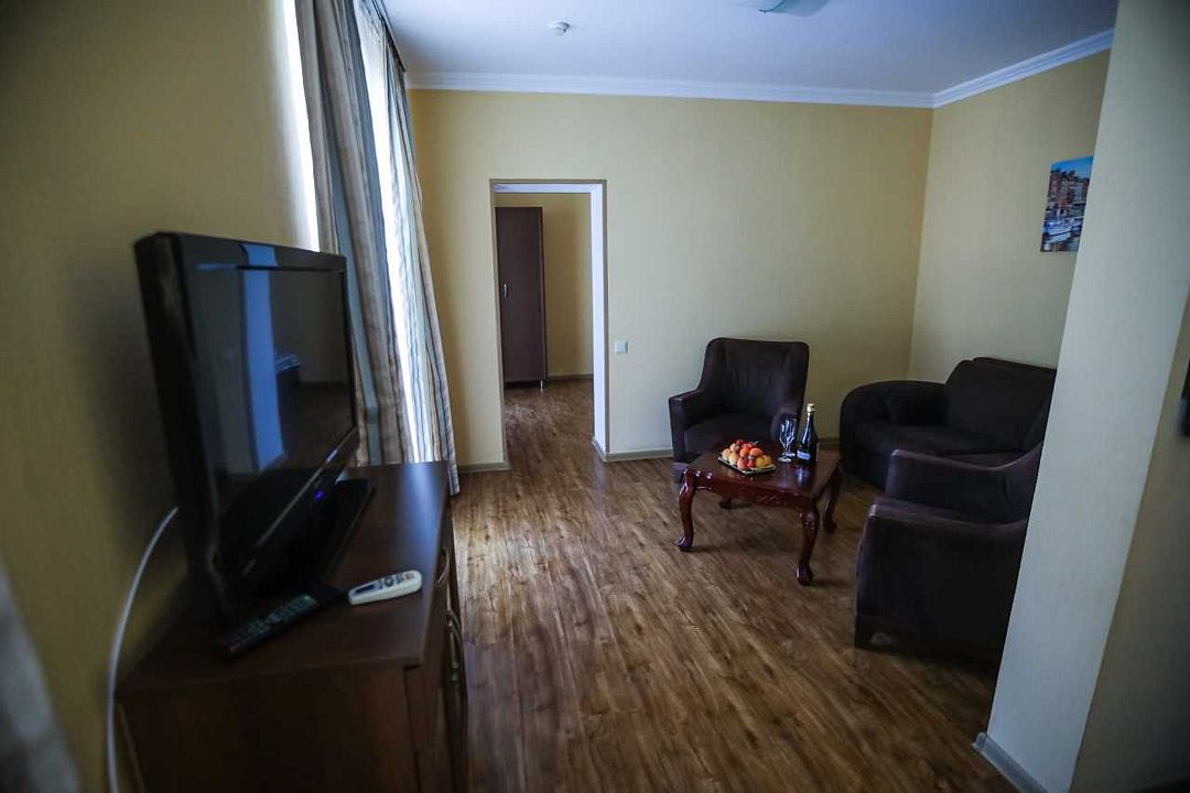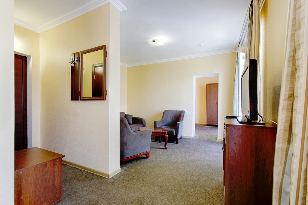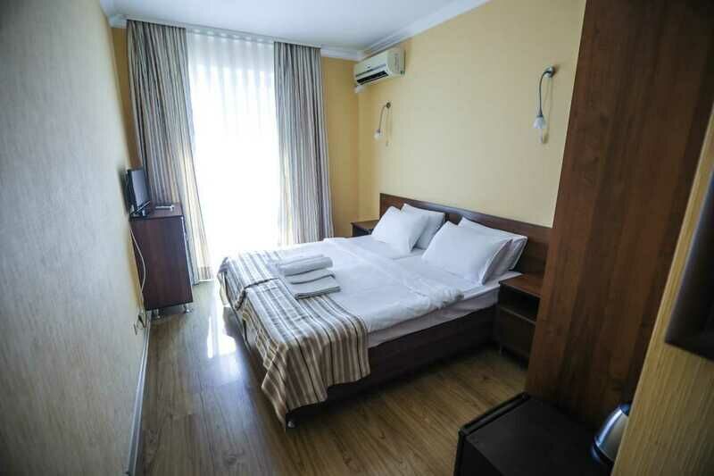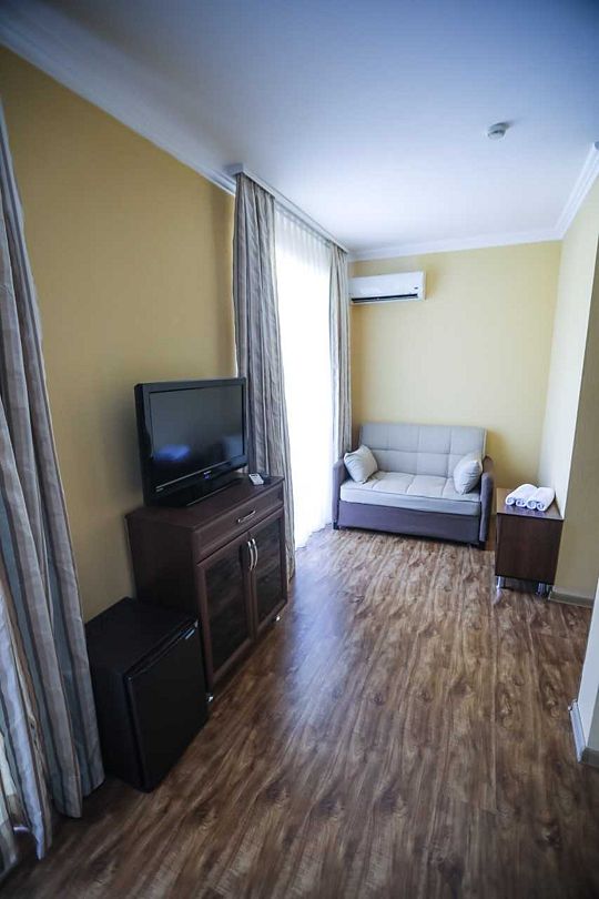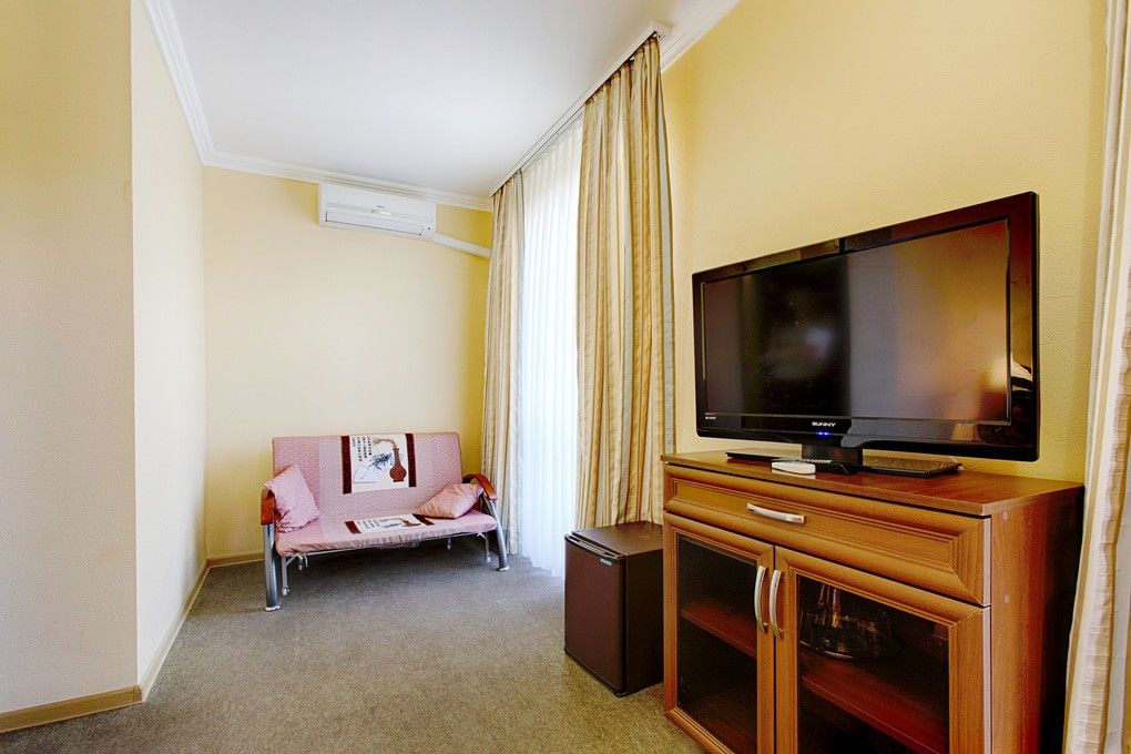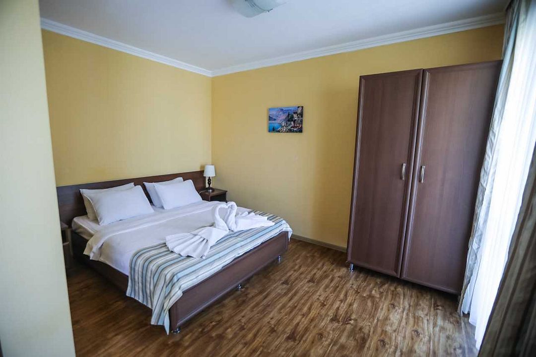 Из окон некоторых номеров открывается вид на море.В числе удобств номеров: кондиционер, холодильник, телевизор, а также санузел с ванной. Предоставляются дополнительные места в 2-местные номера, а значит, здесь удобно разместиться семейным туристам с детьми.