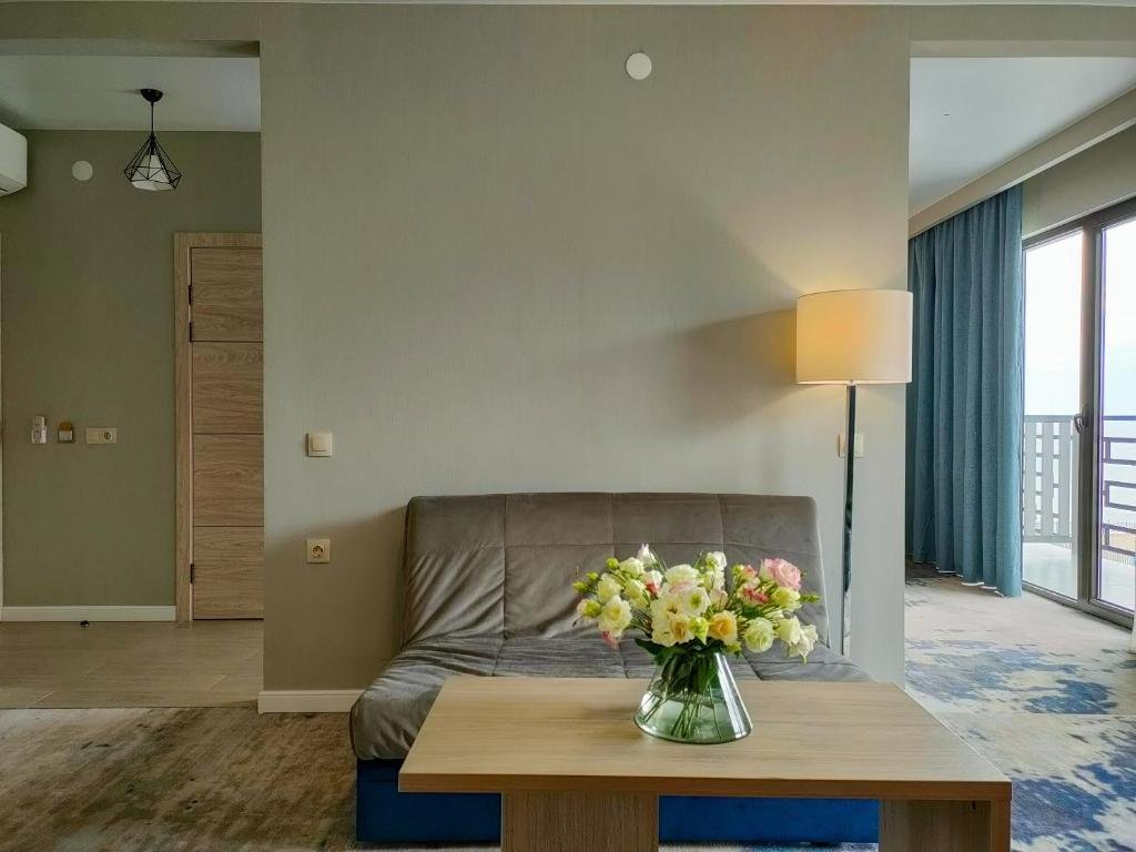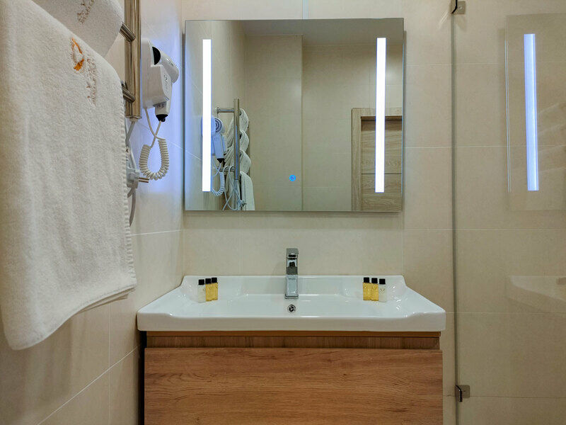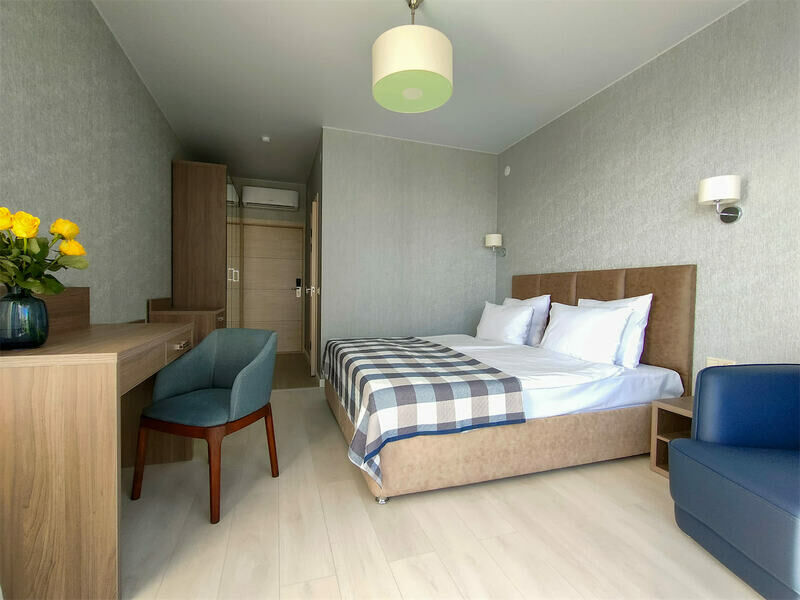 Путешествие в одиночкуA.V.Sokol рекомендую!Была в деловой поездке в конце ноября 2024г, решила остановиться в этом отеле на 3 дня. Не смотря на дождливую погоду в номере тепло, уютно, есть все необходимое (полотенце, тапочки, халат, фен, косметические наборы), что существенно сокращает багаж). Также в номере телевизор, кондиционер, чайная станция. Уборка в номере каждый день, и вообще на всей территории отеля очень чисто. Завтрак отличный, разнообразный и вкусный, по ассортименту не уступает заграничным 5*. Вид с балкона шикарный, мне достался номер 605 с видом и на горы и на море! Территория отеля не большая, но очень красивая, ухоженная, много разных зон отдыха, чистый открытый бассейн с подогревом!). Не смотря на то, что периодически в городе бывают проблемы с электричеством, в отеле это не ощущается, т. к. есть генератор. И ещё большим плюсом то, что территория охраняется и контролируется. Хорошее расположение на первой береговой линии, можно вечером прогуляться по набережной, большой выбор кафе, ресторанов в шаговой доступности, не далеко Центральный рынок. По цене очень демократично, мне предложили не дороже, чем другие отели. Однозначно рекомендую как для деловых поездок, так и для отдыха!